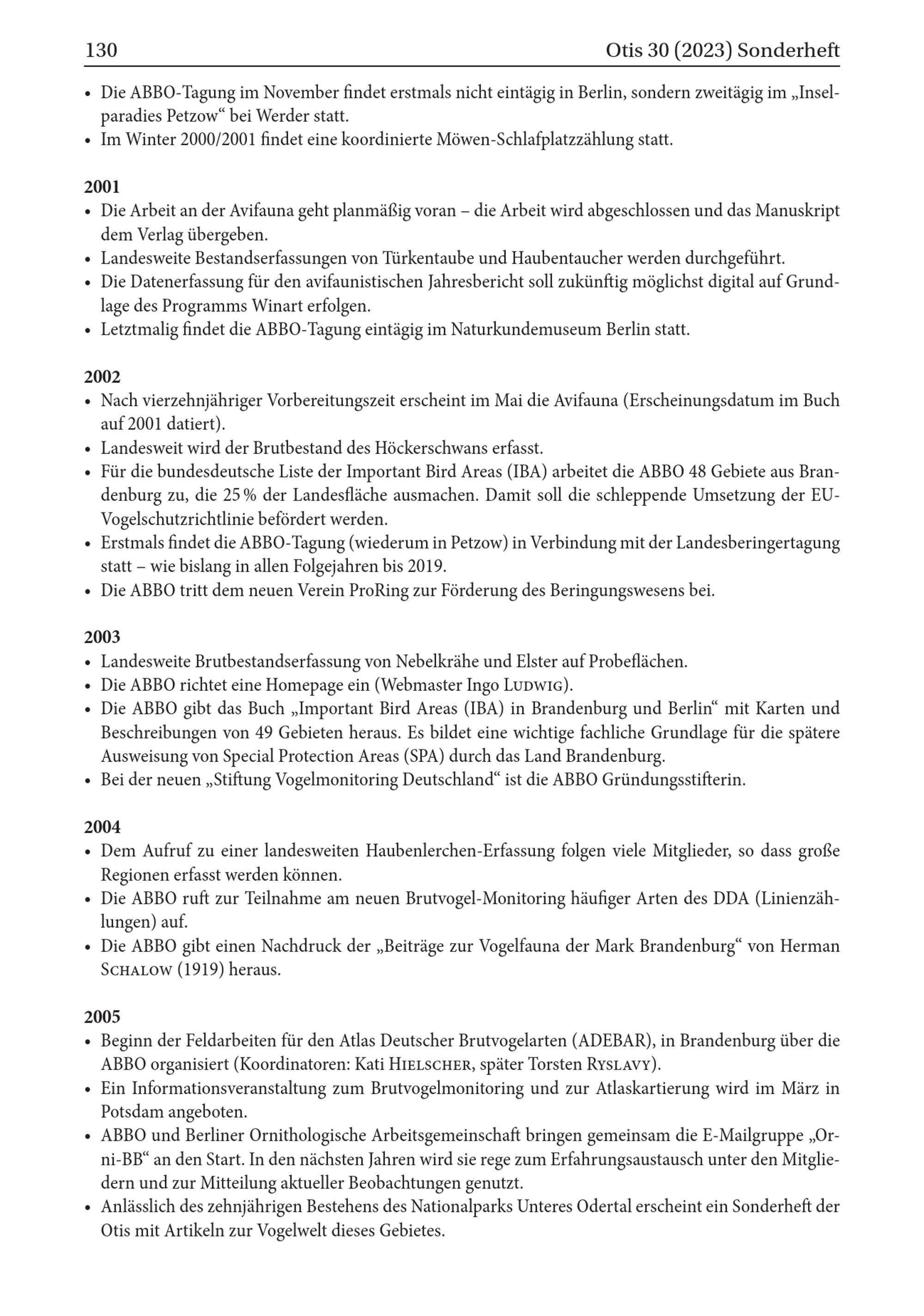 ⚫ Für die bundesdeutsche Liste der Important Bird Areas( IBA) arbeitet die ABBO 48 Gebiete aus Bran denburg zu, die 25% der Landesfläche ausmachen. Damit soll die schleppende Umsetzung der EUVogelschutzrichtlinie befördert werden.