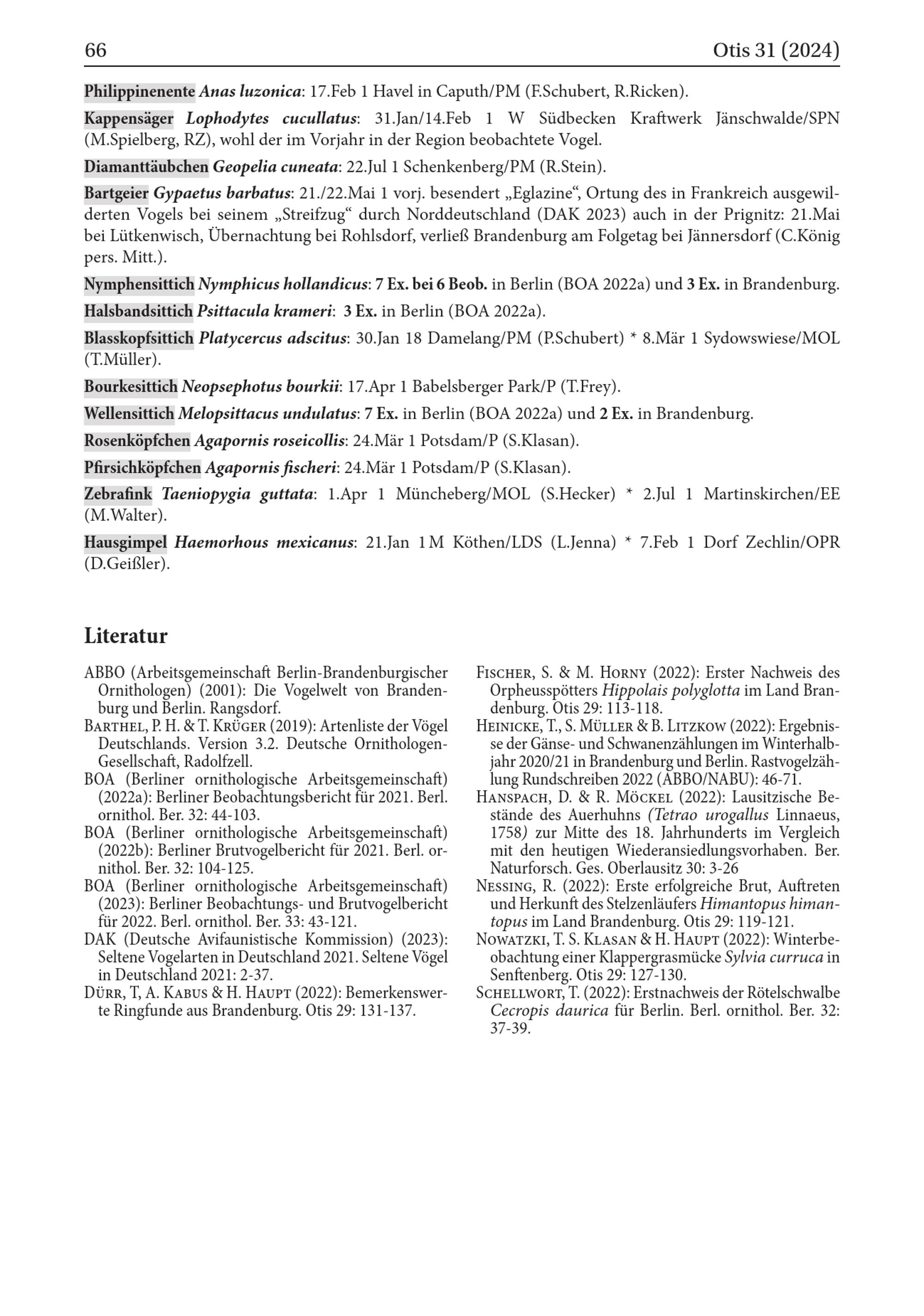 BOA( Berliner ornithologische Arbeitsgemeinschaft) ( 2022a): Berliner Beobachtungsbericht für 2021. Berl. ornithol. Ber. 32: 44-103.
