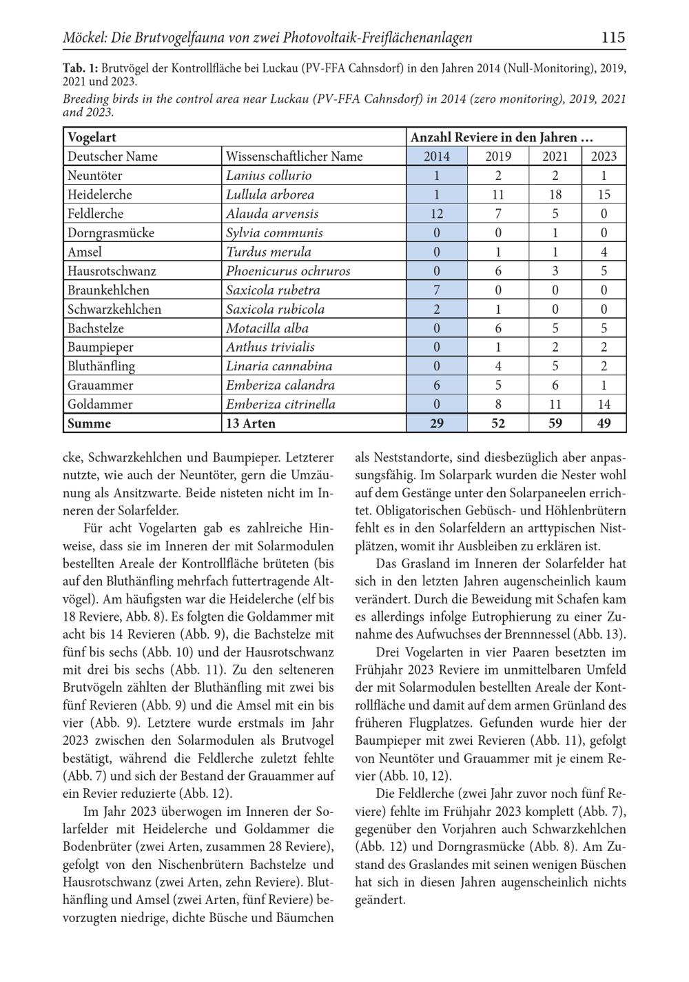 Möckel: Die Brutvogelfauna von zwei Photovoltaik- Freiflächenanlagen