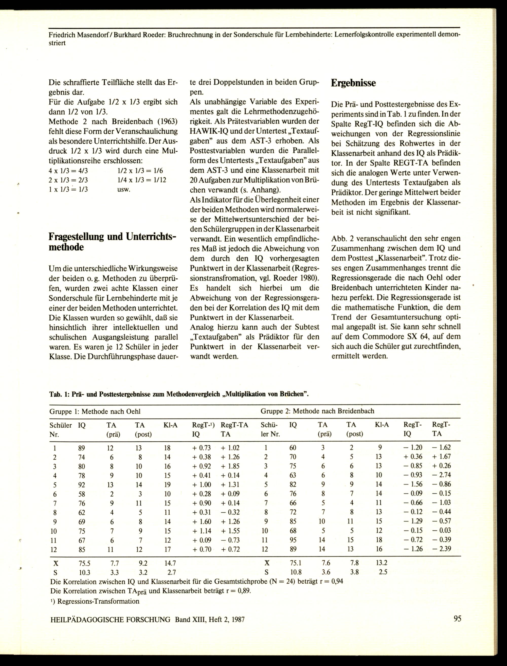 HEILPÄDAGOGISCHE FORSCHUNG Band XIII, Heft 2, 1987