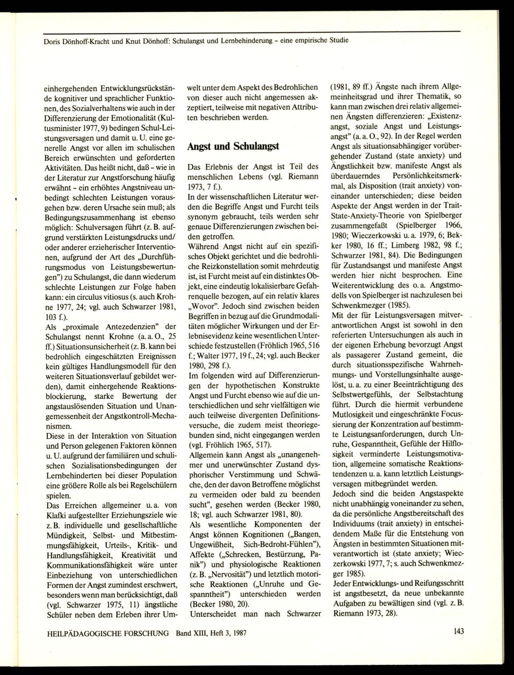 HEILPÄDAGOGISCHE FORSCHUNG Band XIII, Heft 3, 1987