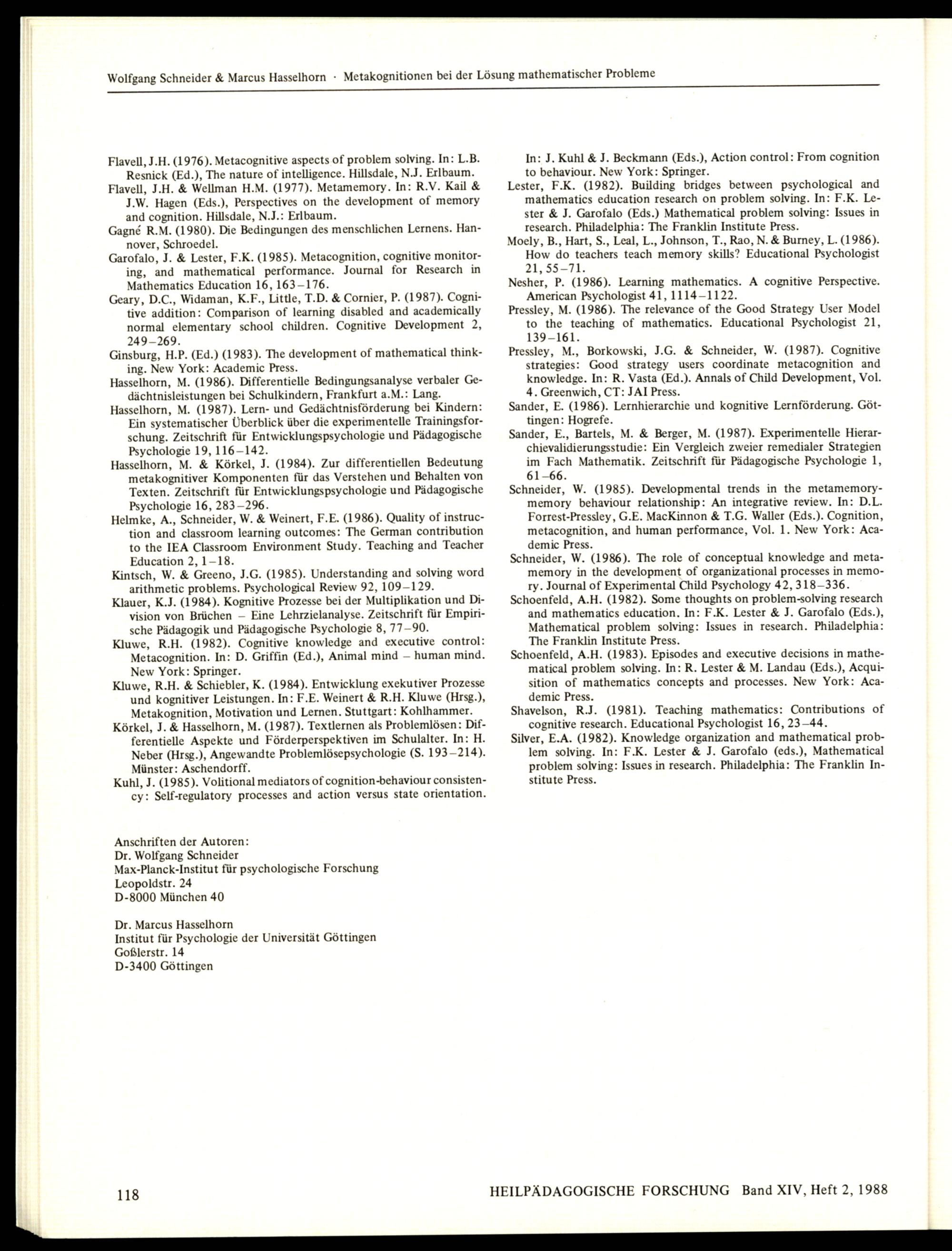 HEILPÄDAGOGISCHE FORSCHUNG Band XIV, Heft 2, 1988