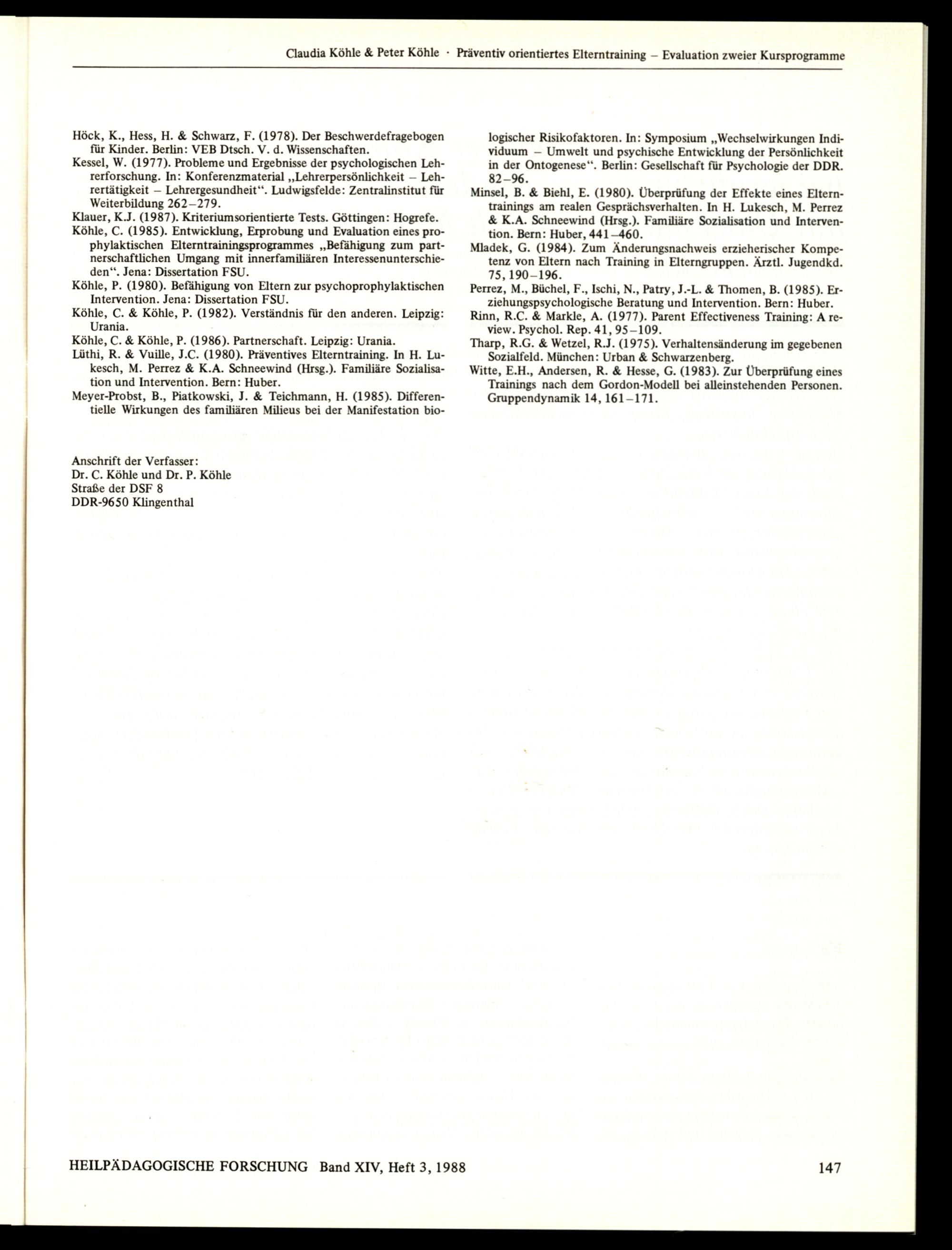HEILPÄDAGOGISCHE FORSCHUNG Band XIV, Heft 3, 1988 147
