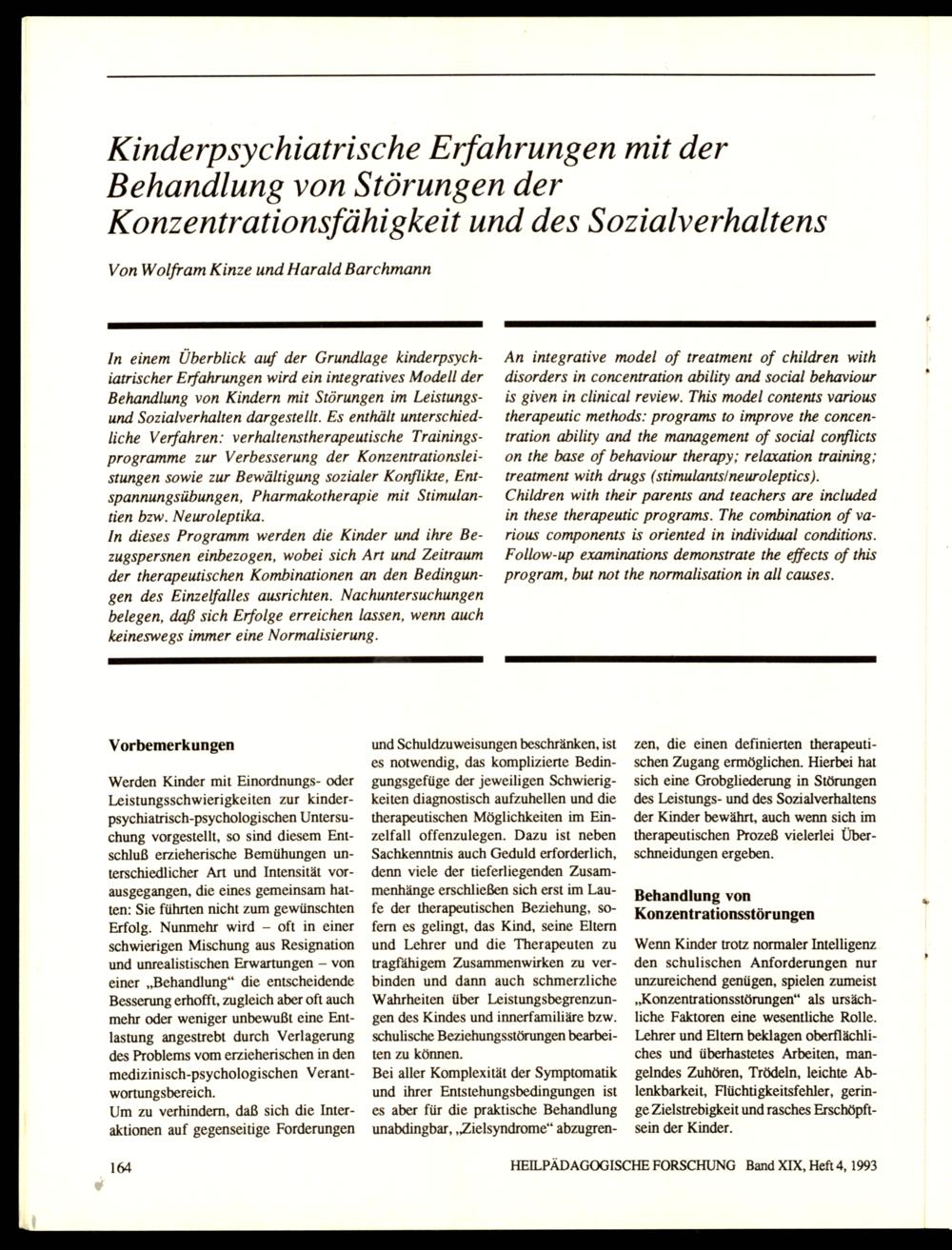 HEILPÄDAGOGISCHE FORSCHUNG Band XIX, Heft 4, 1993