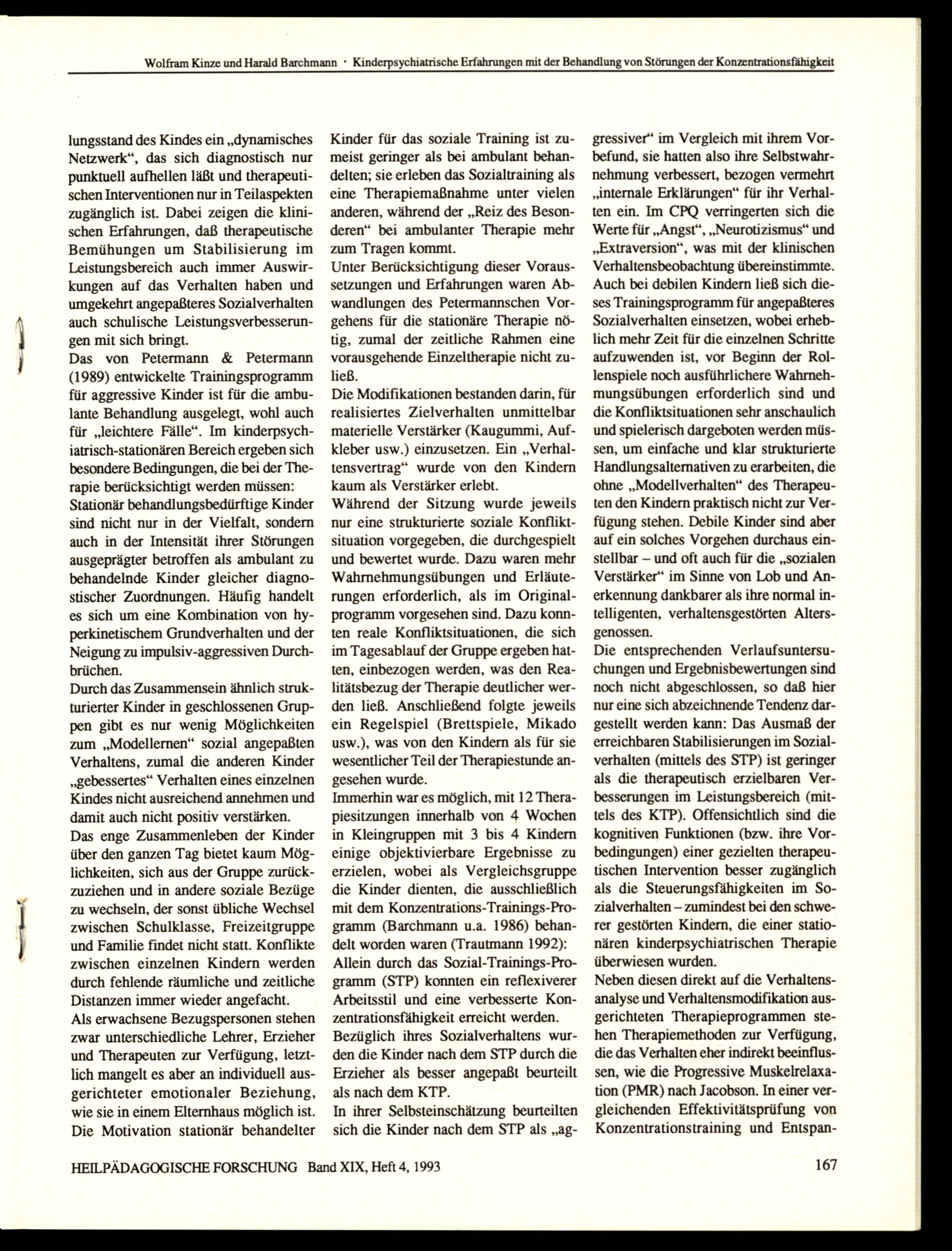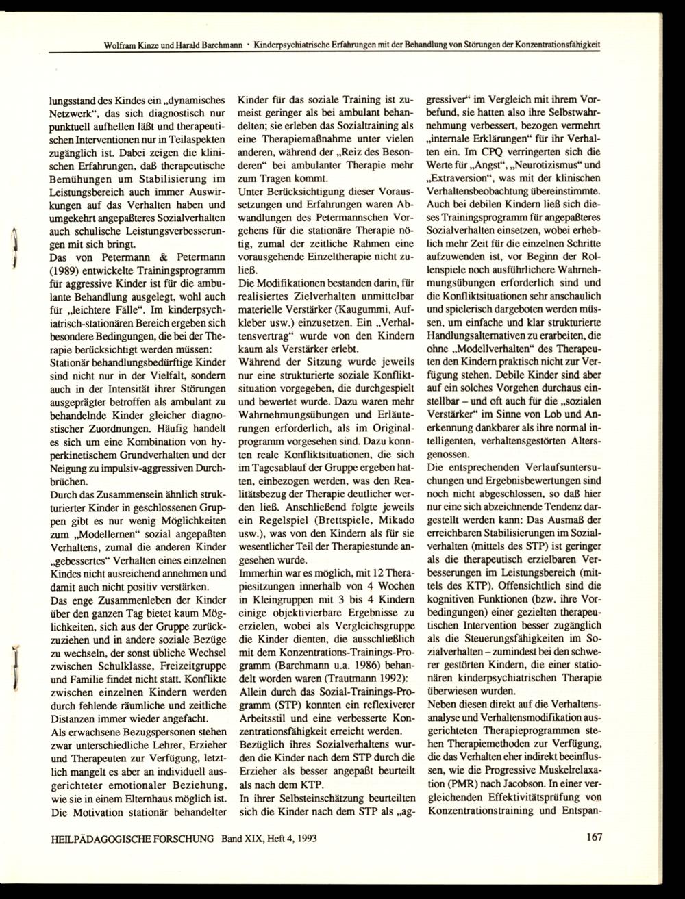 HEILPÄDAGOGISCHE FORSCHUNG Band XIX, Heft 4, 1993
