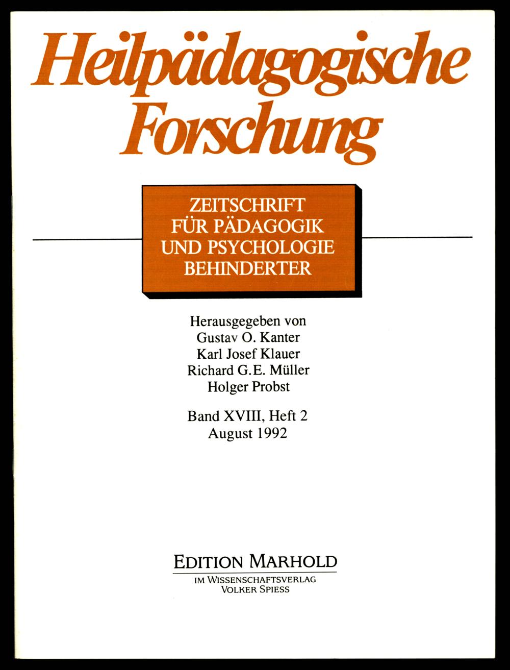 ZEITSCHRIFT FÜR PÄDAGOGIK UND PSYCHOLOGIE BEHINDERTER
