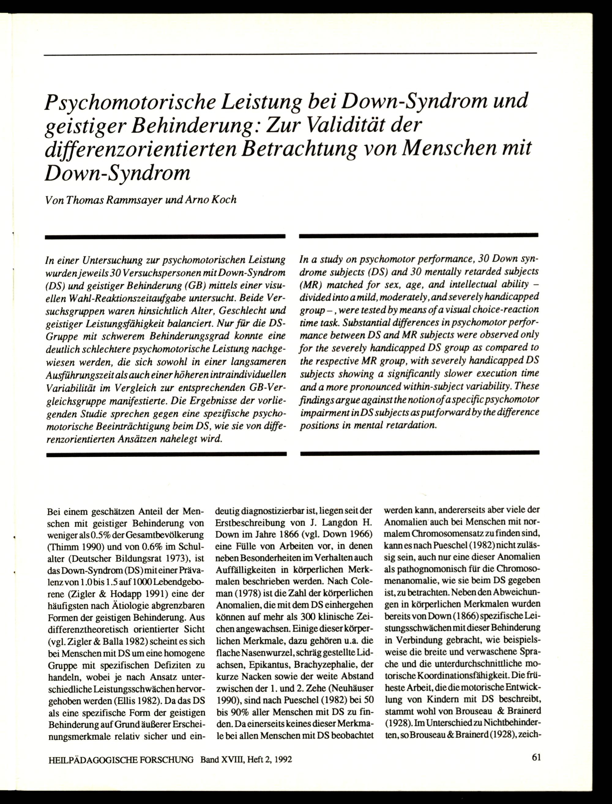 HEILPÄDAGOGISCHE FORSCHUNG Band XVII, Heft 2, 1992