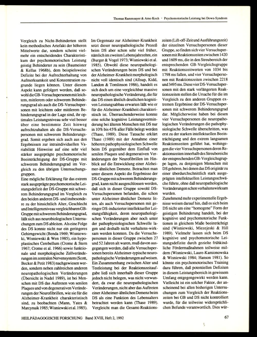Thomas Rammsayer& Arno Koch* Psychomotorische Leistung bei Down-Syndrom