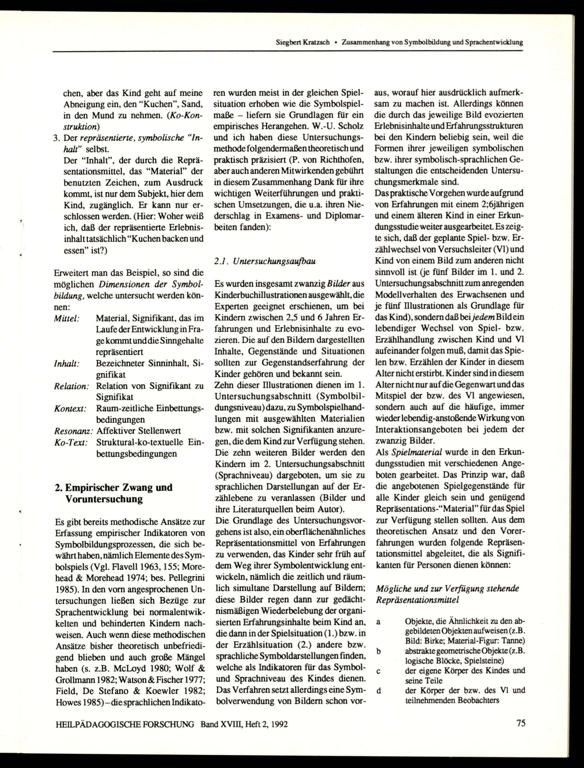 Siegbert Kratzsch* Zusammenhang von Symbolbildung und Sprachentwicklung
