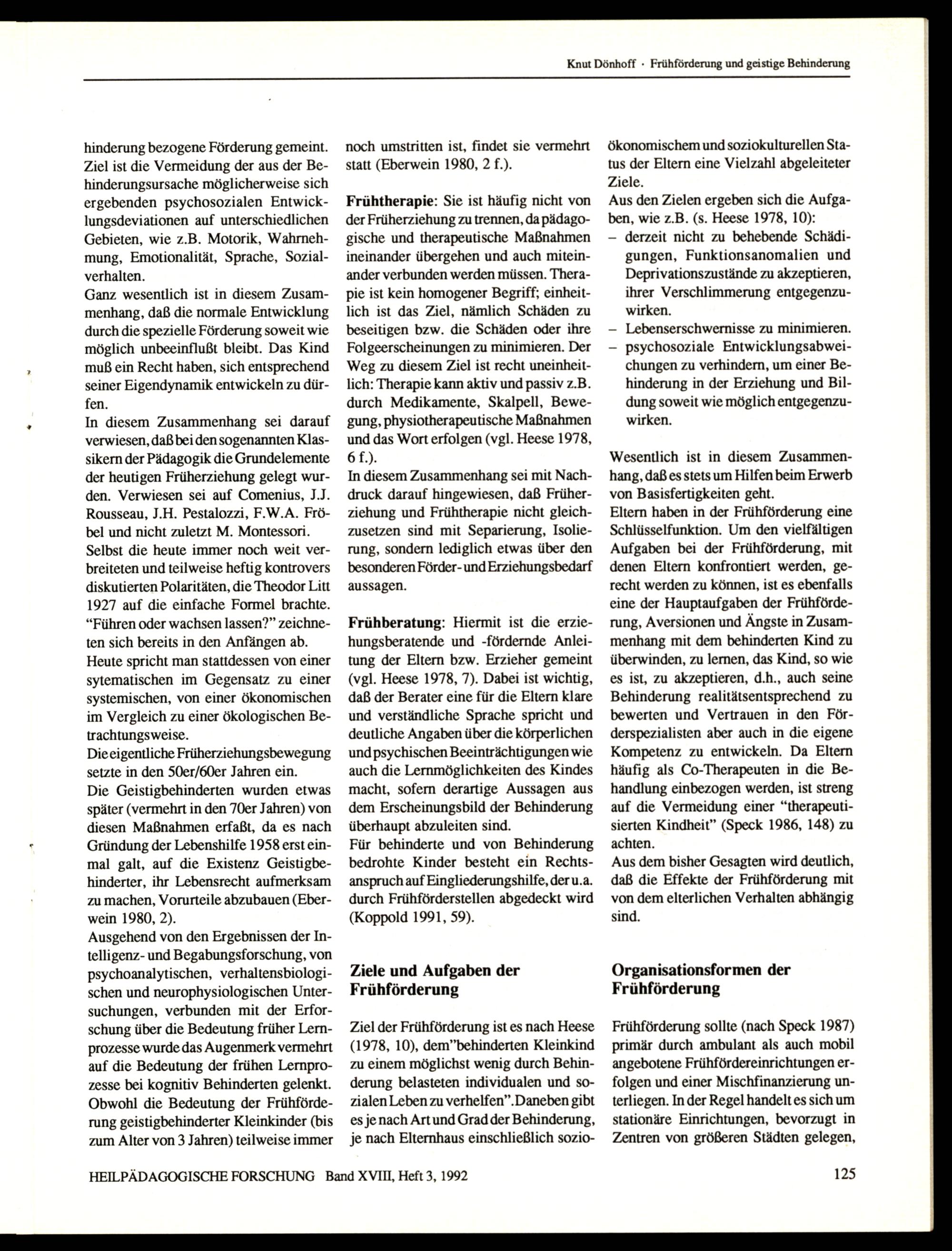 HEILPÄDAGOGISCHE FORSCHUNG Band XVII, Heft 3, 1992
