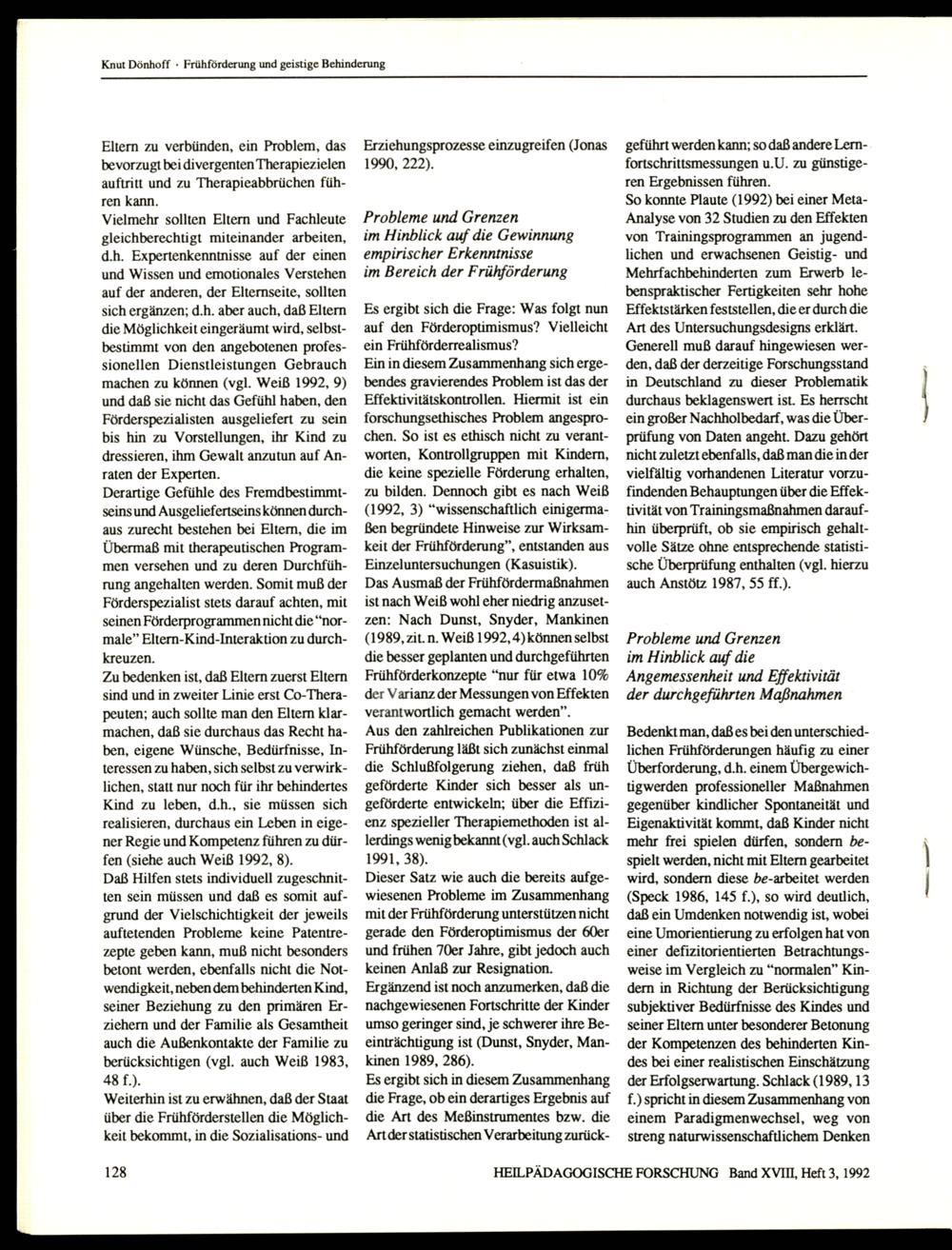 HEILPÄDAGOGISCHE FORSCHUNG Band XVII, Heft 3, 1992