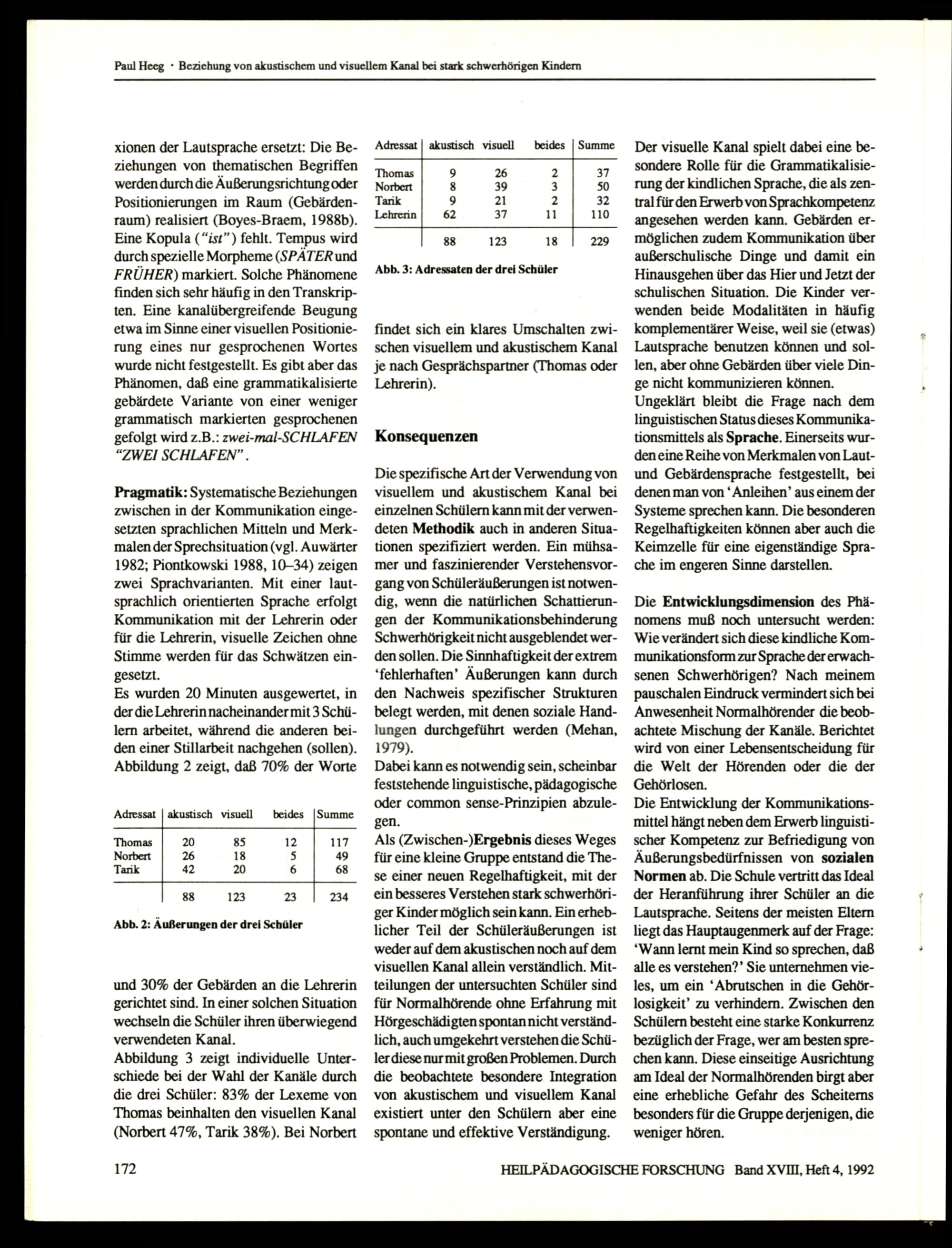 HEILPÄDAGOGISCHE FORSCHUNG Band XVII, Heft 4, 1992