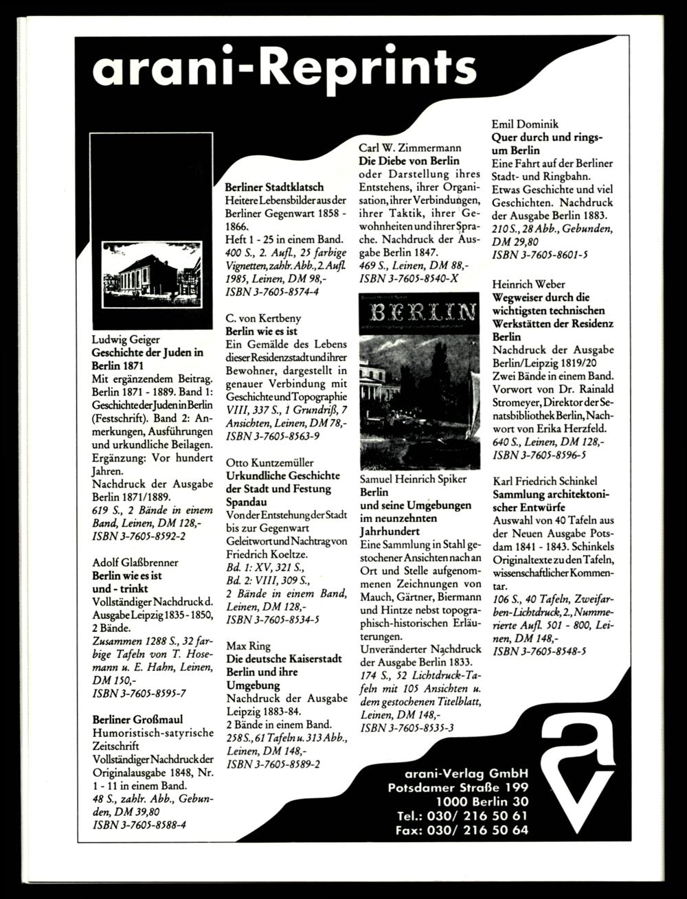 arani-Verlag GmbH Potsdamer Straße 199 1000 Berlin 30