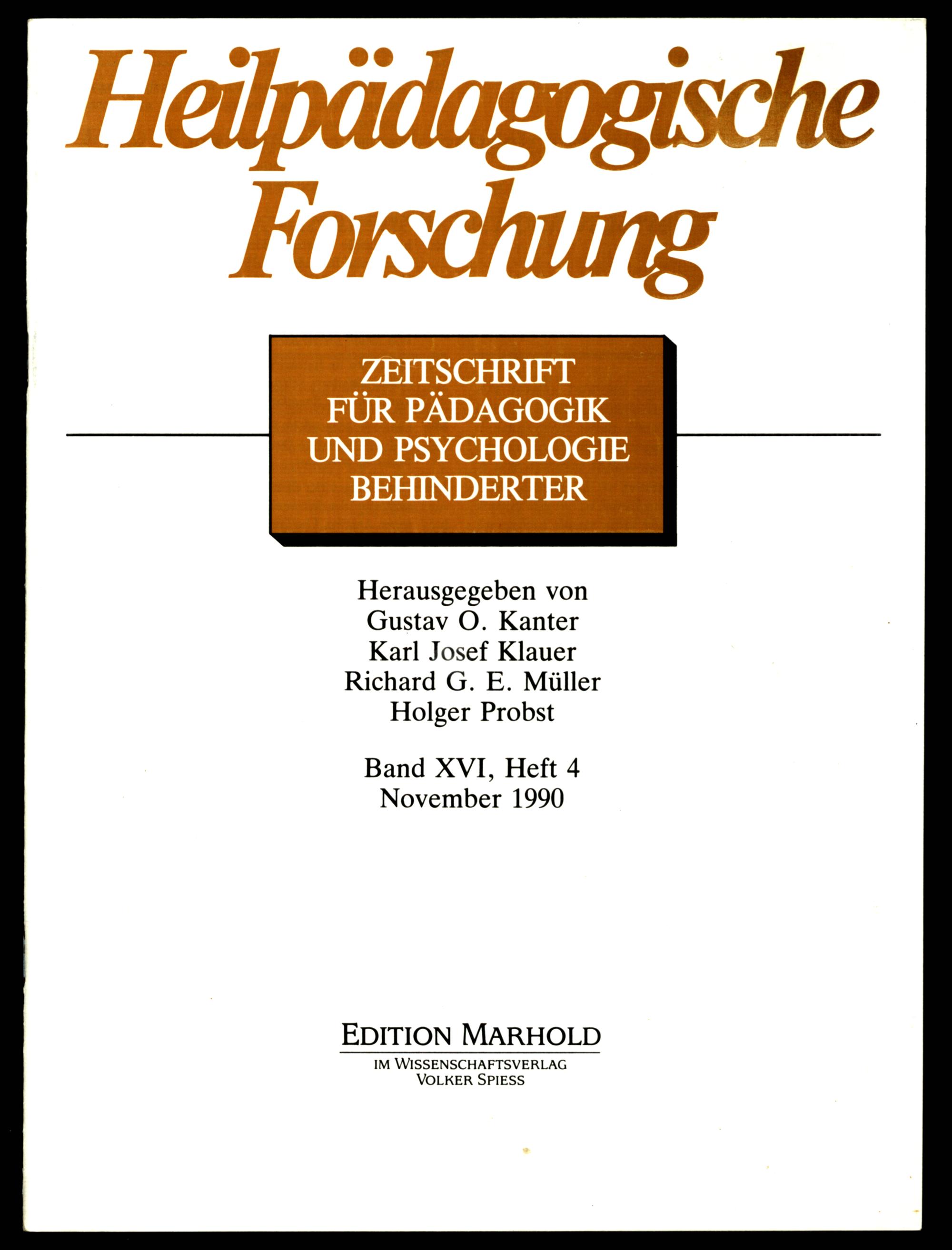 ZEITSCHRIFT FÜR PÄDAGOGIK UND PSYCHOLOGIE BEHINDERTER