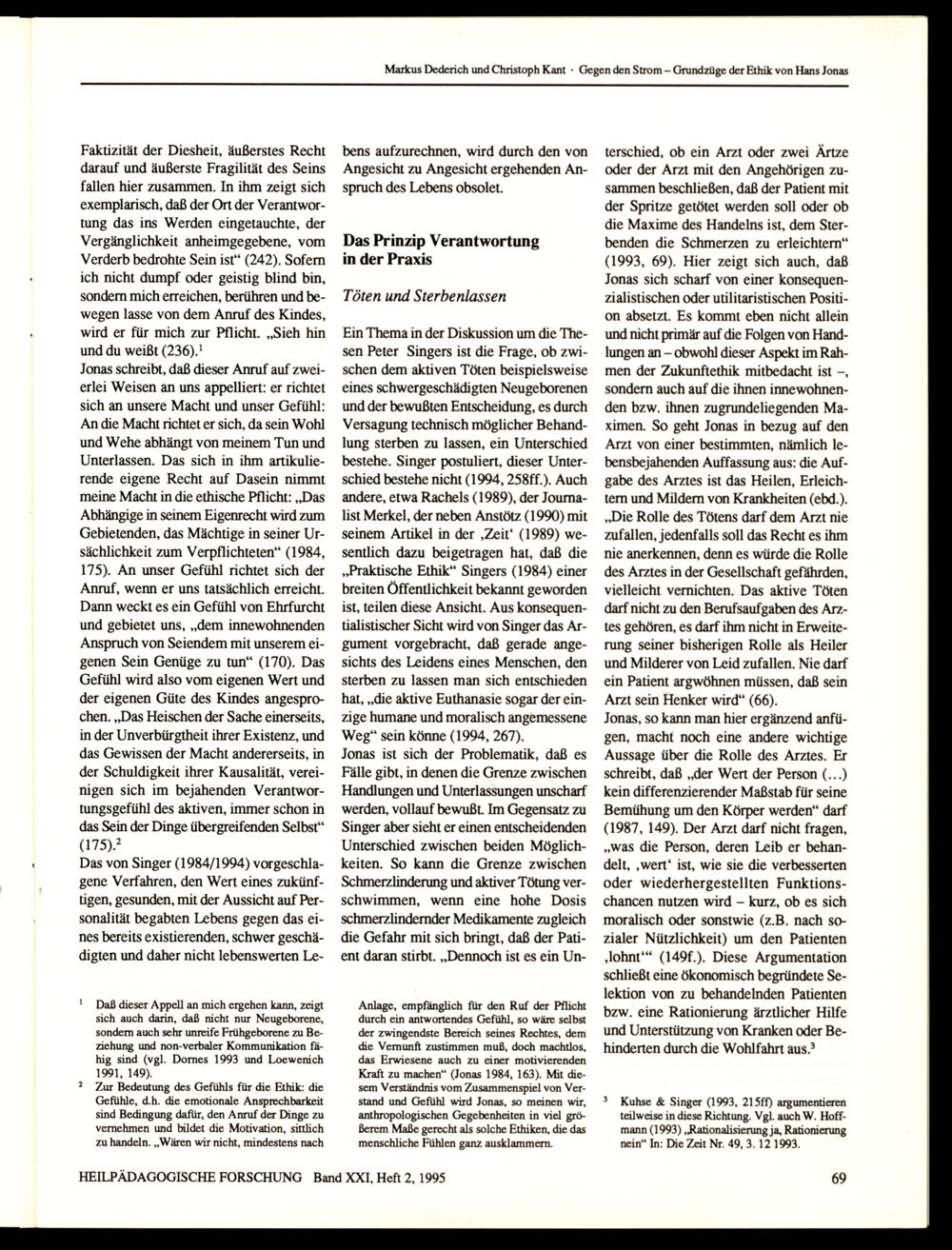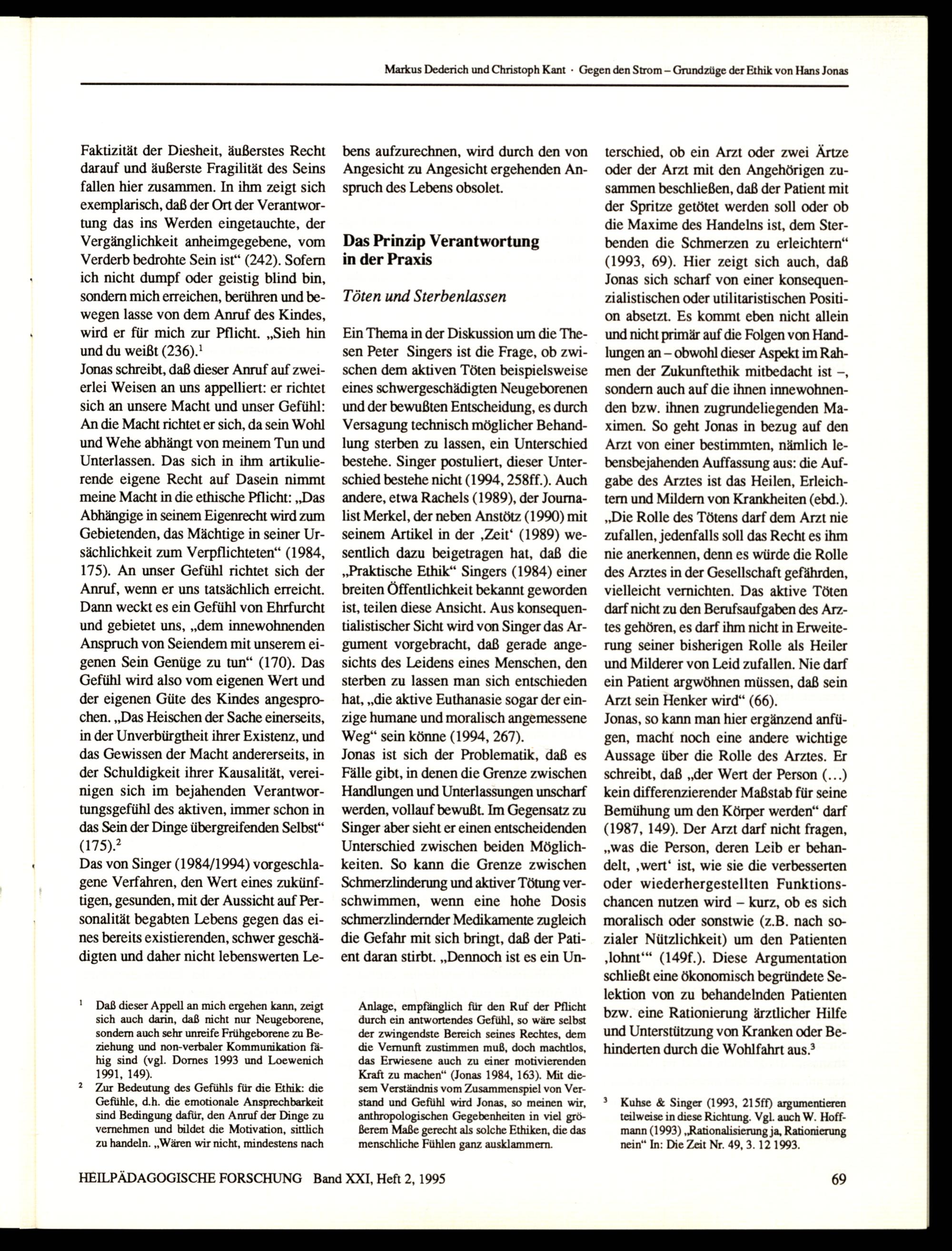 HEILPÄDAGOGISCHE FORSCHUNG Band XXI, Heft 2, 1995