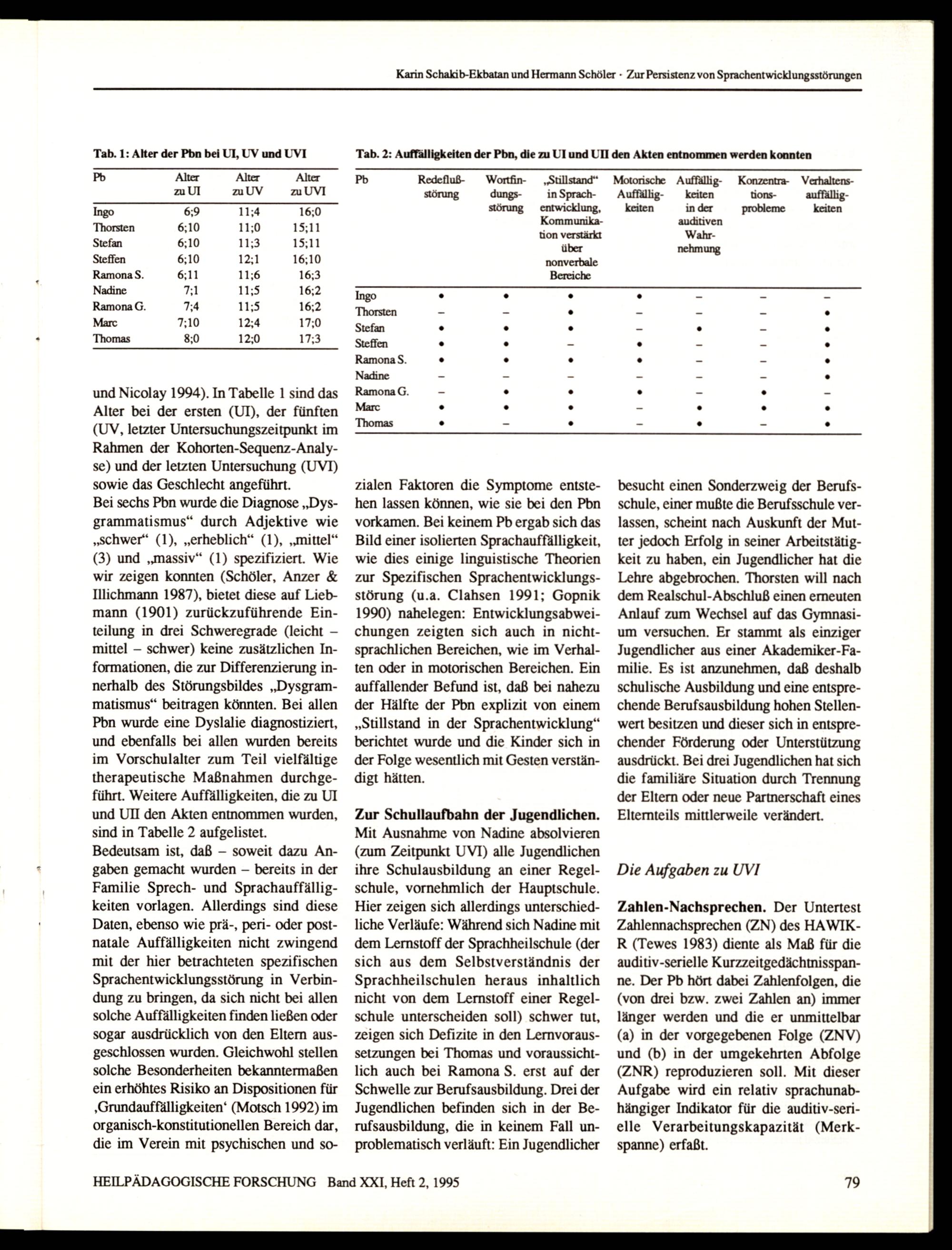 HEILPÄDAGOGISCHE FORSCHUNG Band XXI, Heft 2, 1995