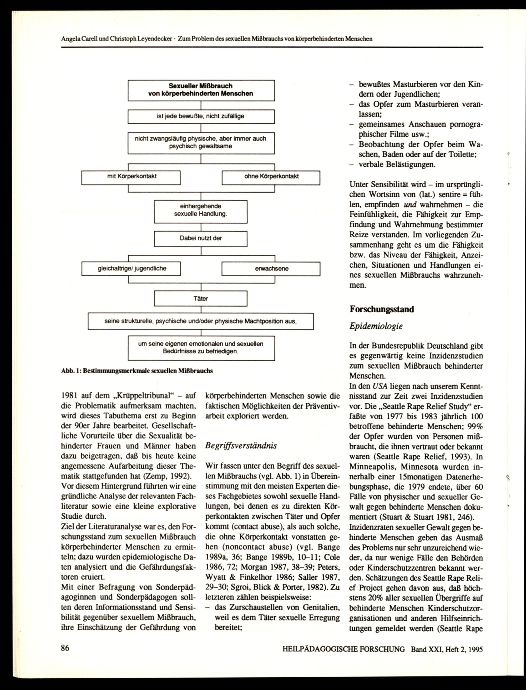 HEILPÄDAGOGISCHE FORSCHUNG Band XXI, Heft 2, 1995