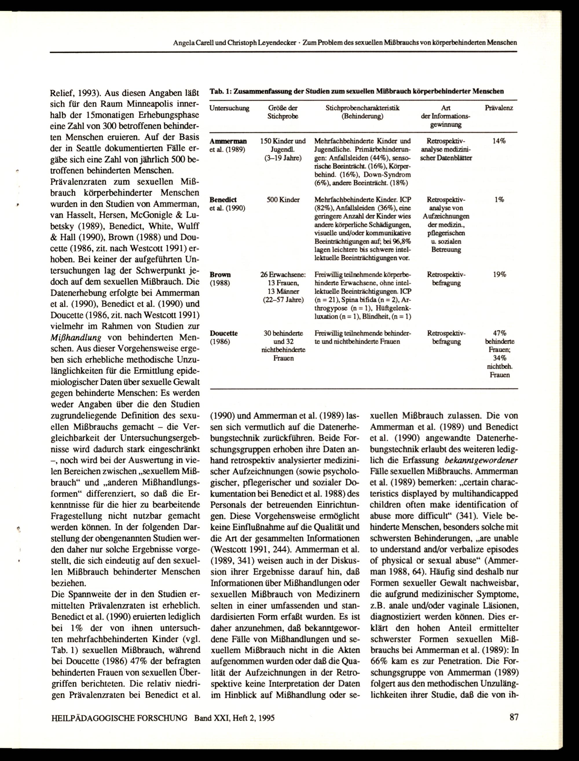 HEILPÄDAGOGISCHE FORSCHUNG Band XXI, Heft 2, 1995