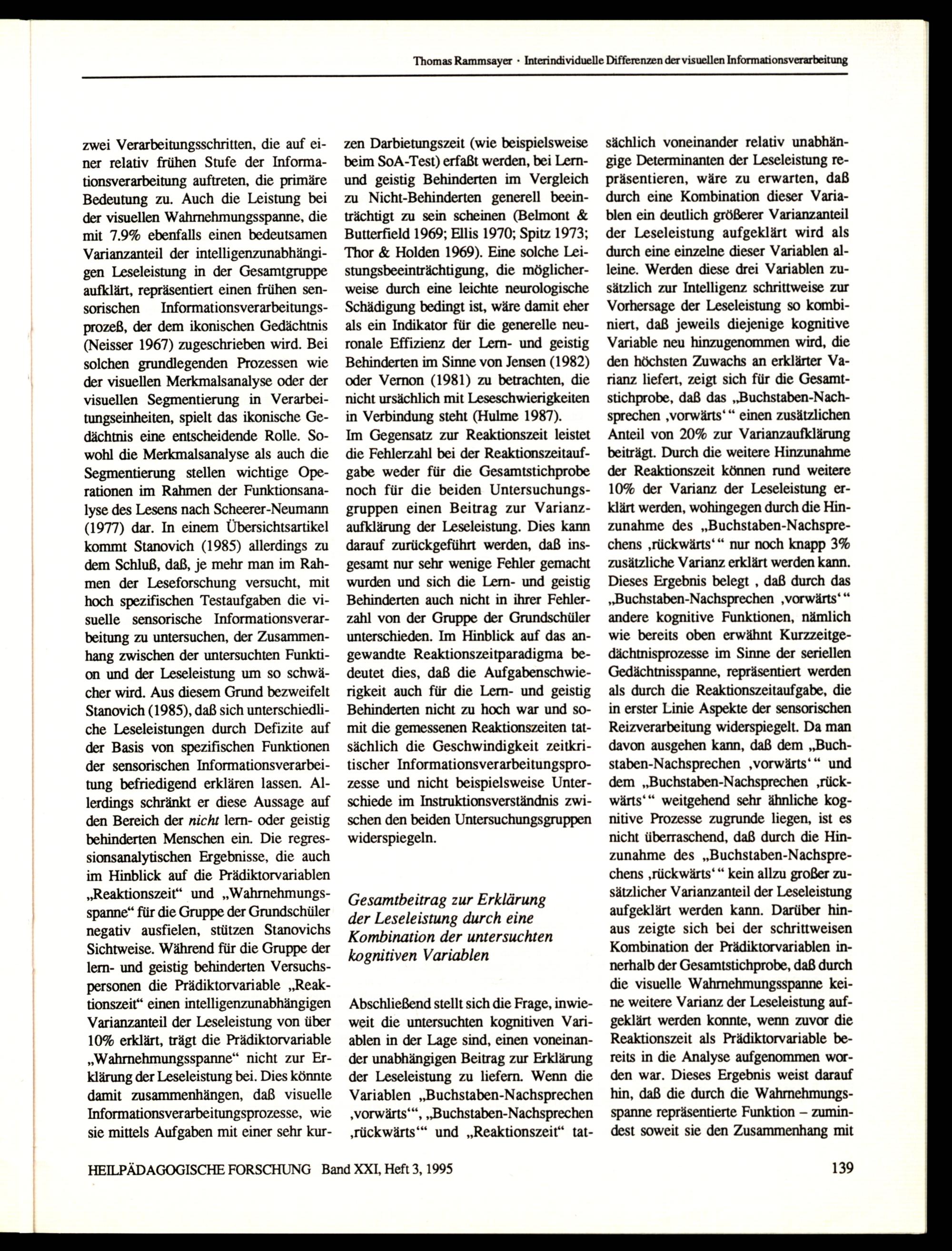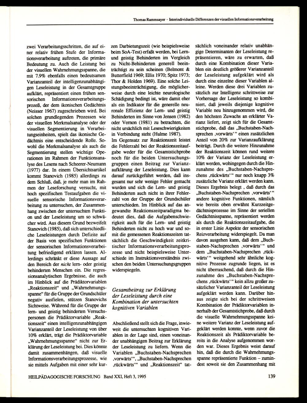HEILPÄDAGOGISCHE FORSCHUNG Band XXI, Heft 3, 1995