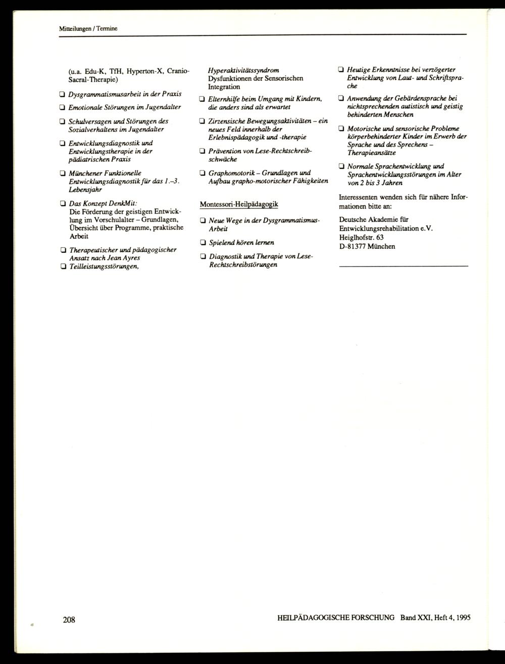 HEILPÄDAGOGISCHE FORSCHUNG Band XXI, Heft 4, 1995