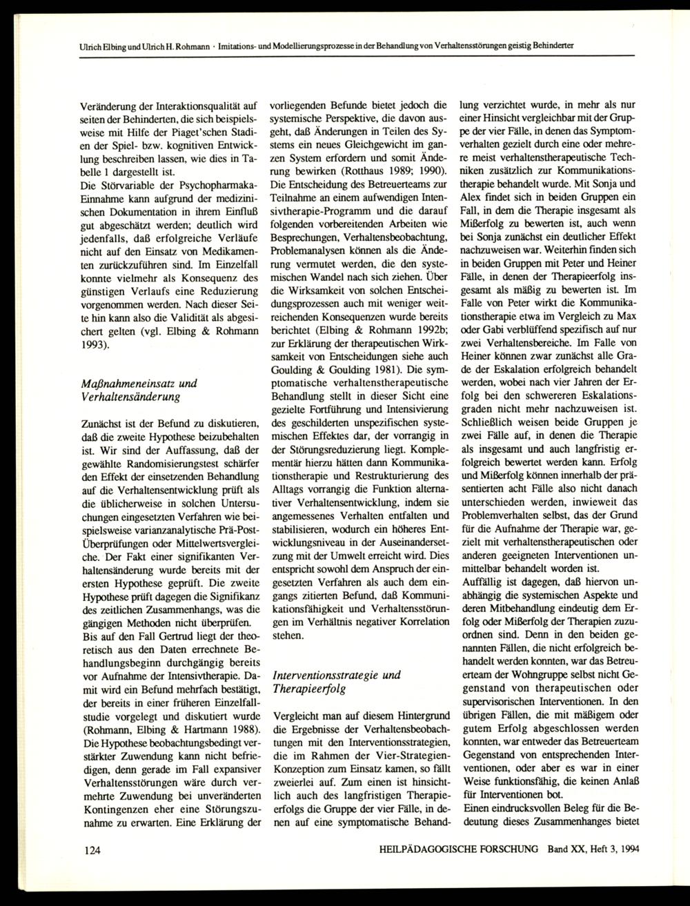 Ulrich Elbing und Ulrich H. Rohmann+ Imitations- und Modellierungsprozesse in der Behandlung von Verhaltensstörungen geistig Behinderter
