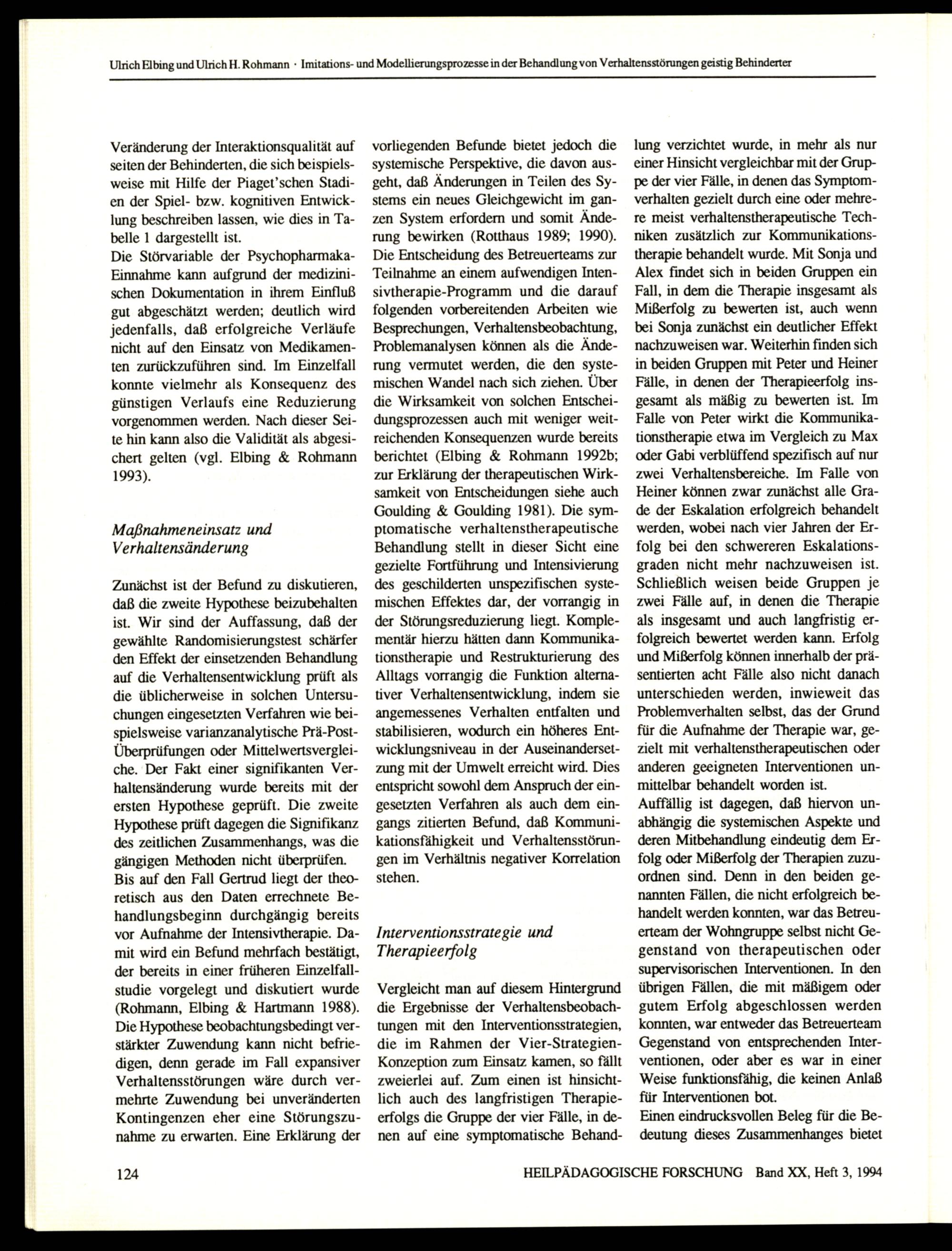 HEILPÄDAGOGISCHE FORSCHUNG Band XX, Heft 3, 1994