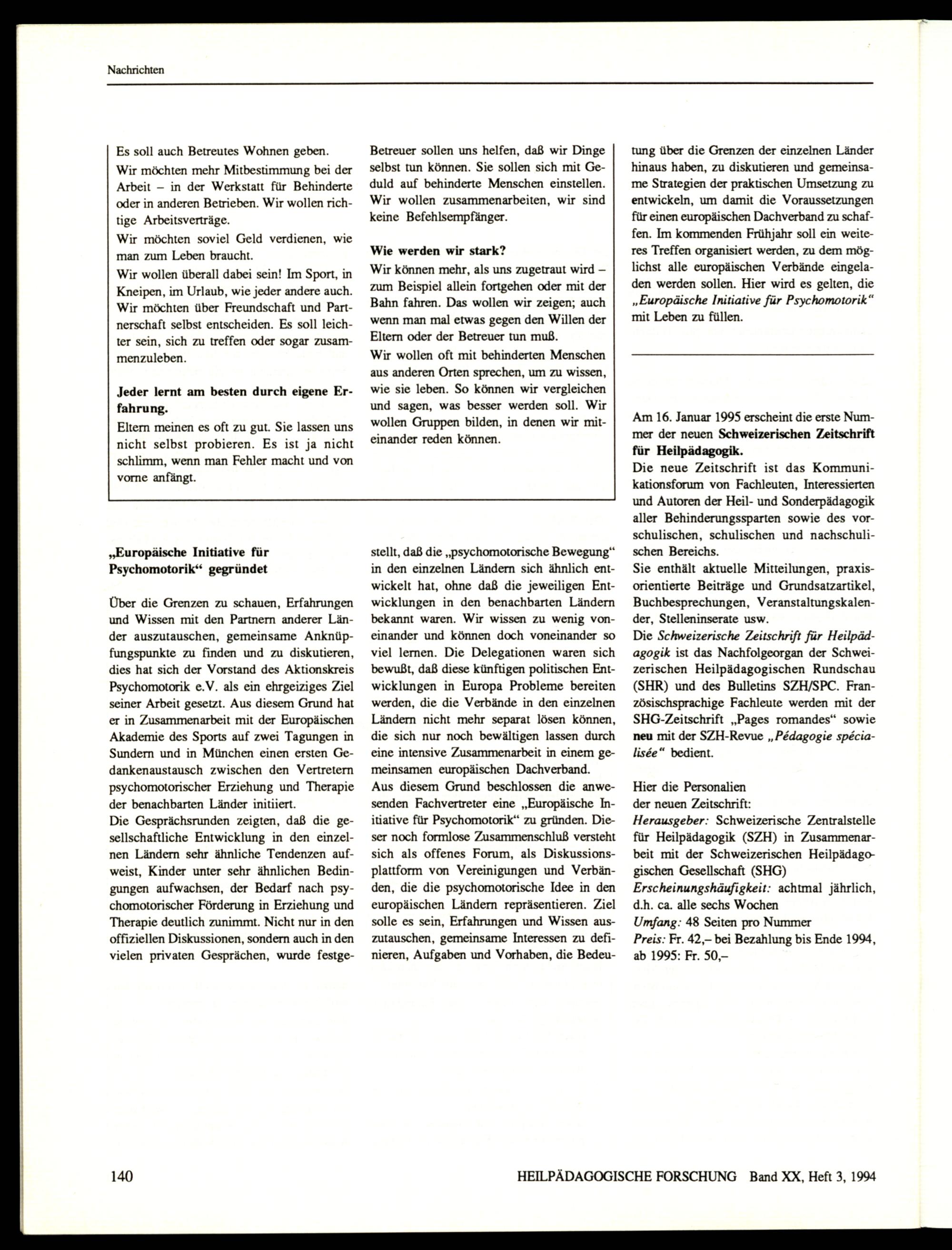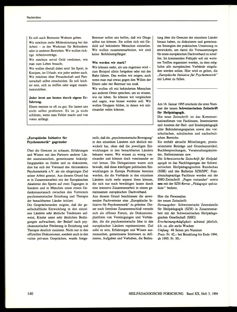 HEILPÄDAGOGISCHE FORSCHUNG Band XX, Heft 3, 1994