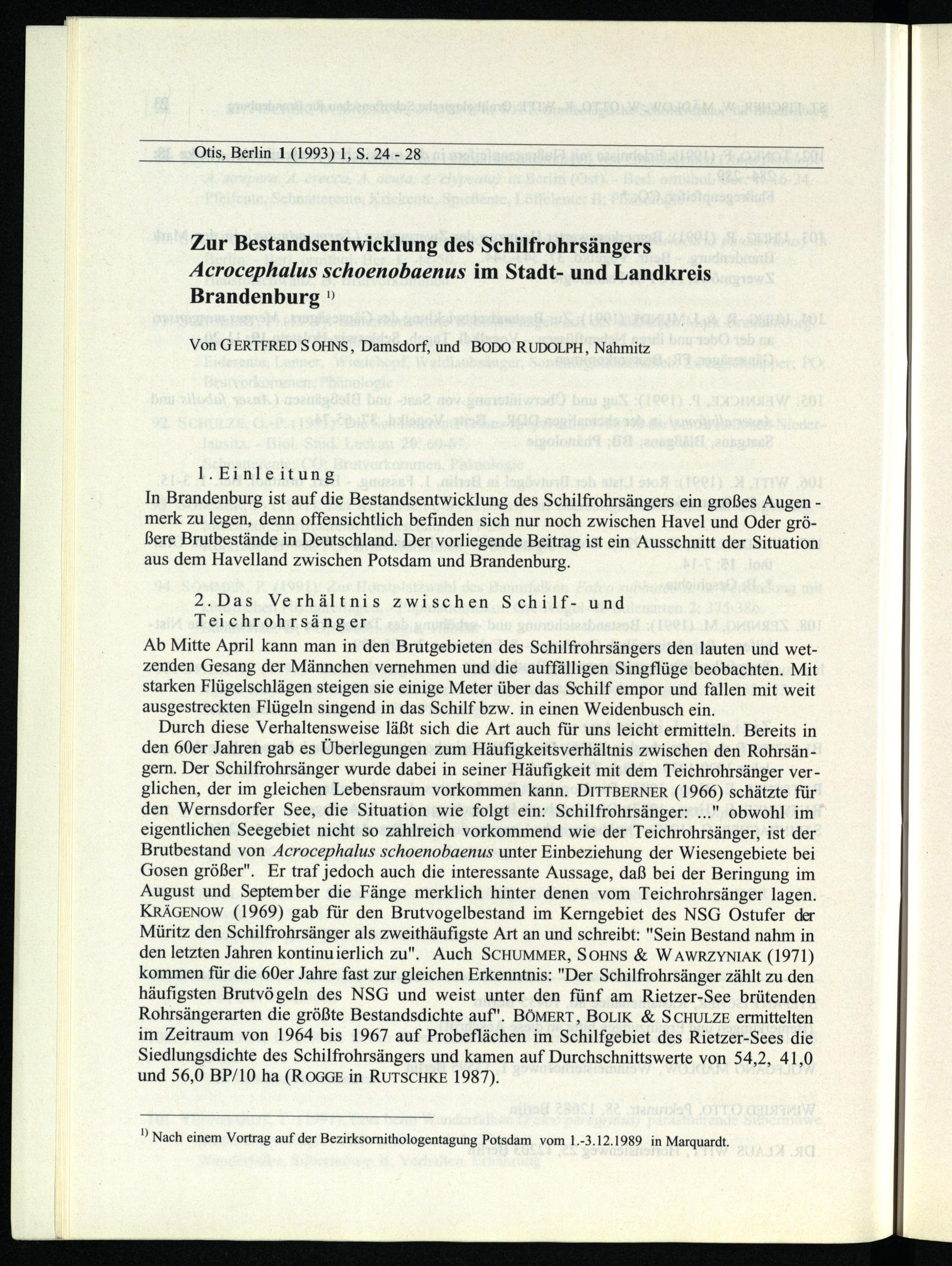 Sohns, Gertfred/ Rudolph, Bodo, Zur Bestandsentwicklung des Acrocephalus schoenobaenus...