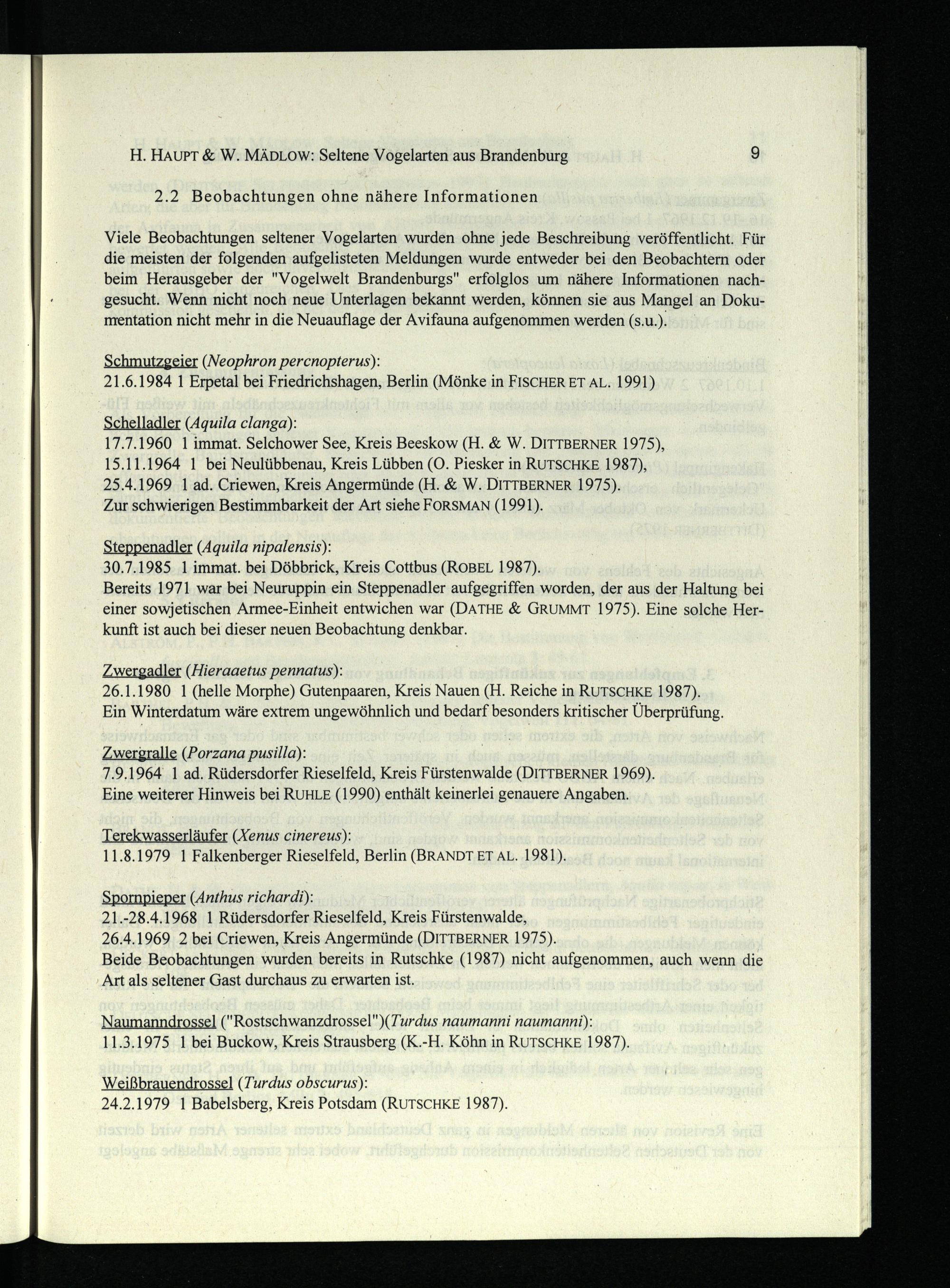 Haupt, Hartmut/ Mädlow, Wolfgang, Eine kritiche Betrachtung von Beobachtungen seltener...