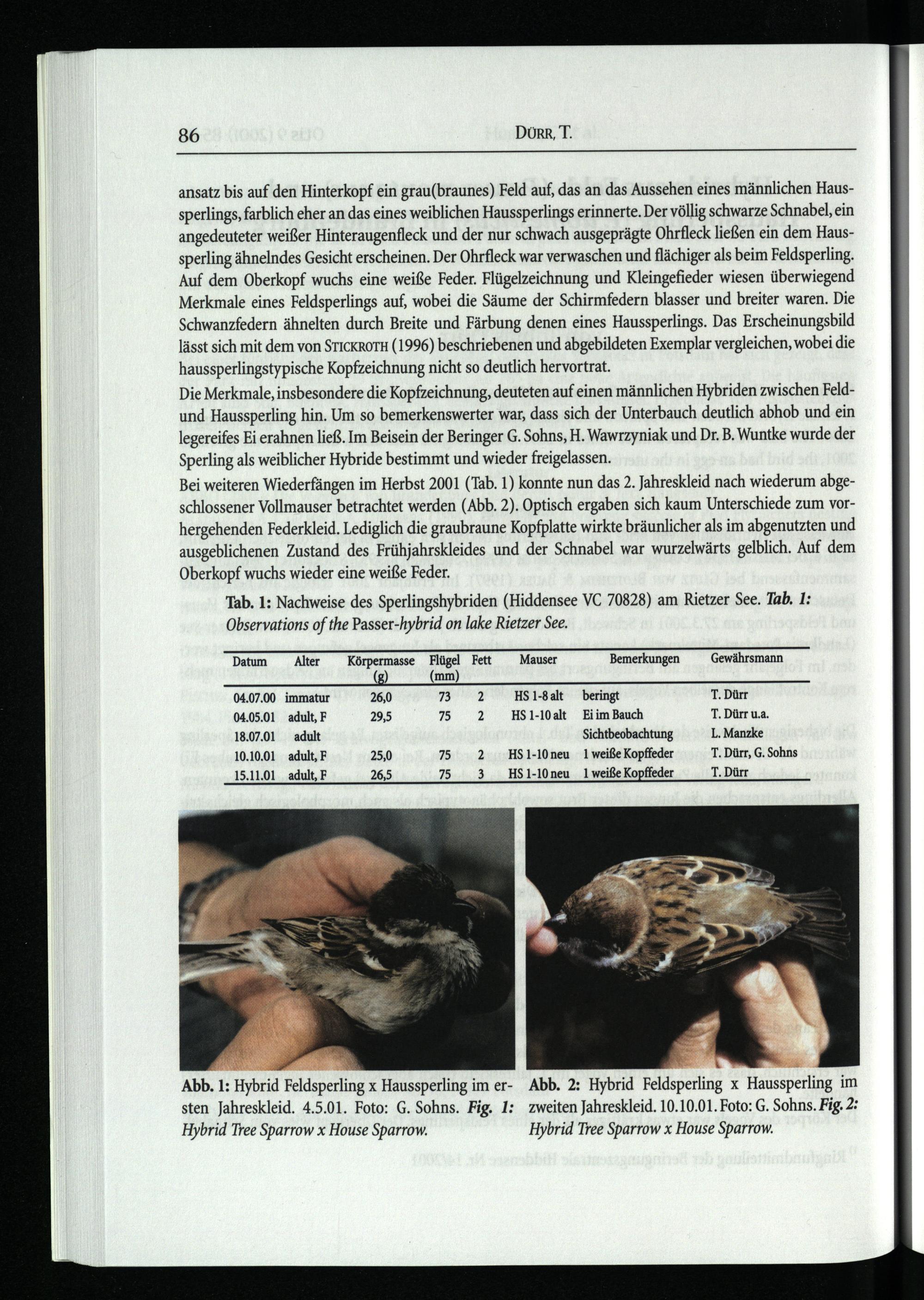 Dürr, Tobias, Hybride aus Feld- (Passer montanus) und Haussperling (P. domesticus)...