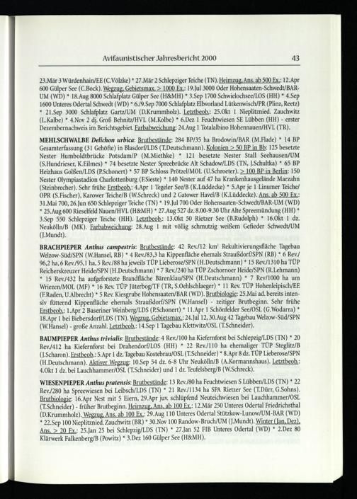 Haupt, Hartmut/ Mädlow, Wolfgang/ Tammler, Ulrich, Avifaunistischer Jahresbericht...