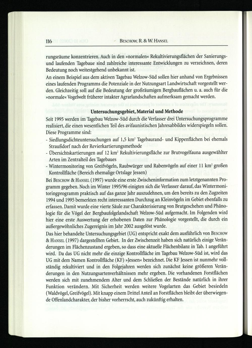Beschow, Ronald/ Hansel, Werner, Zur Rast ausgewählter Kleinvogelarten im Tagebau...