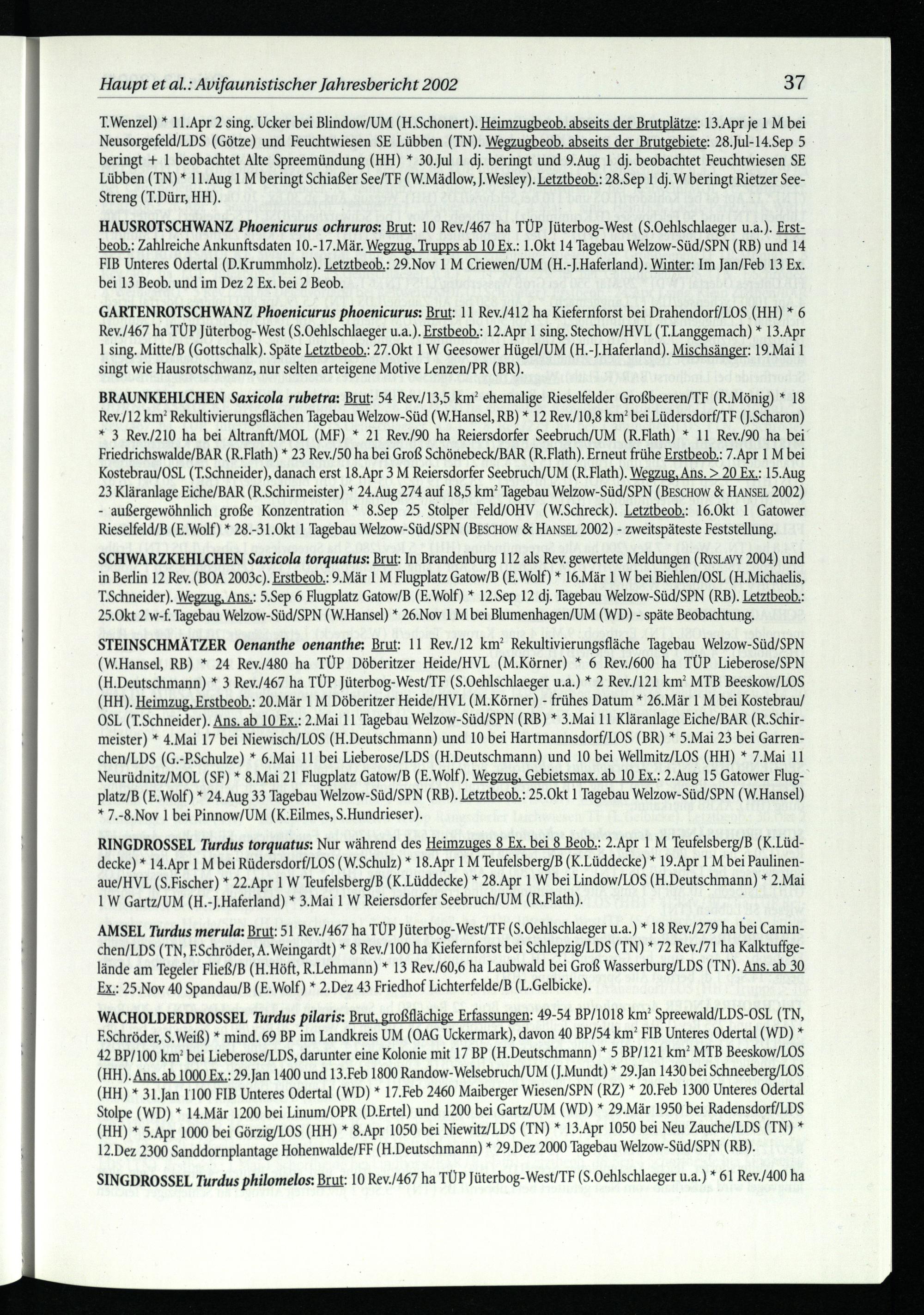 Haupt, Hartmut/ Mädlow, Wolfgang/ Tammler, Ulrich, Avifaunistischer Jahresbericht...
