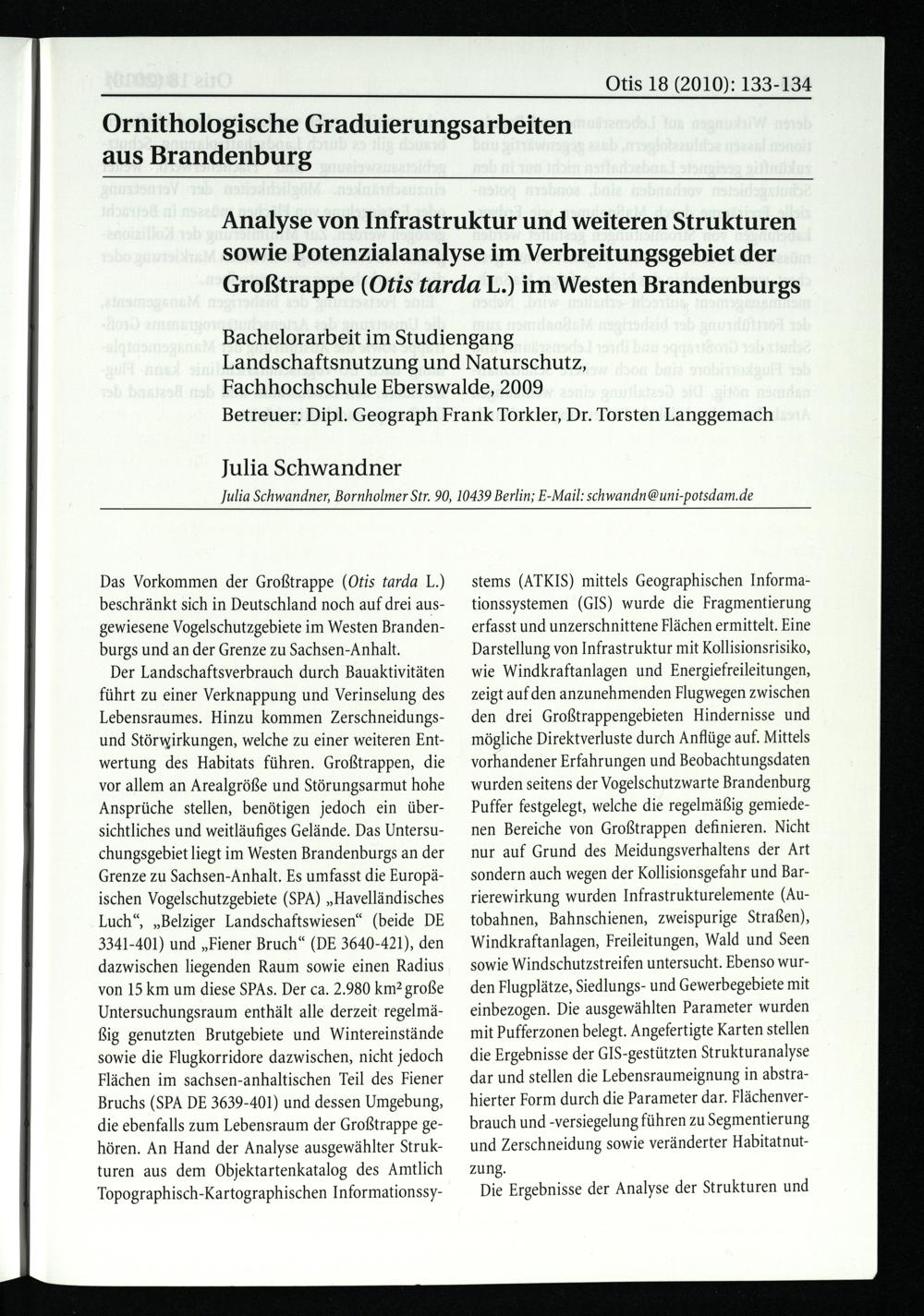 Ornithologische Graduierungsarbeiten aus Brandenburg