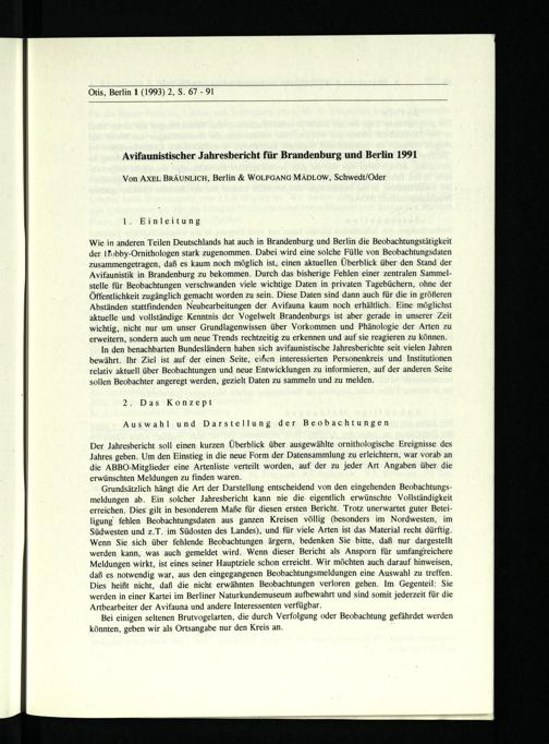 Bräunlich, Axel/ Mädlow, Wolfgang, Avifaunistischer Jahresbericht für Brandenburg...