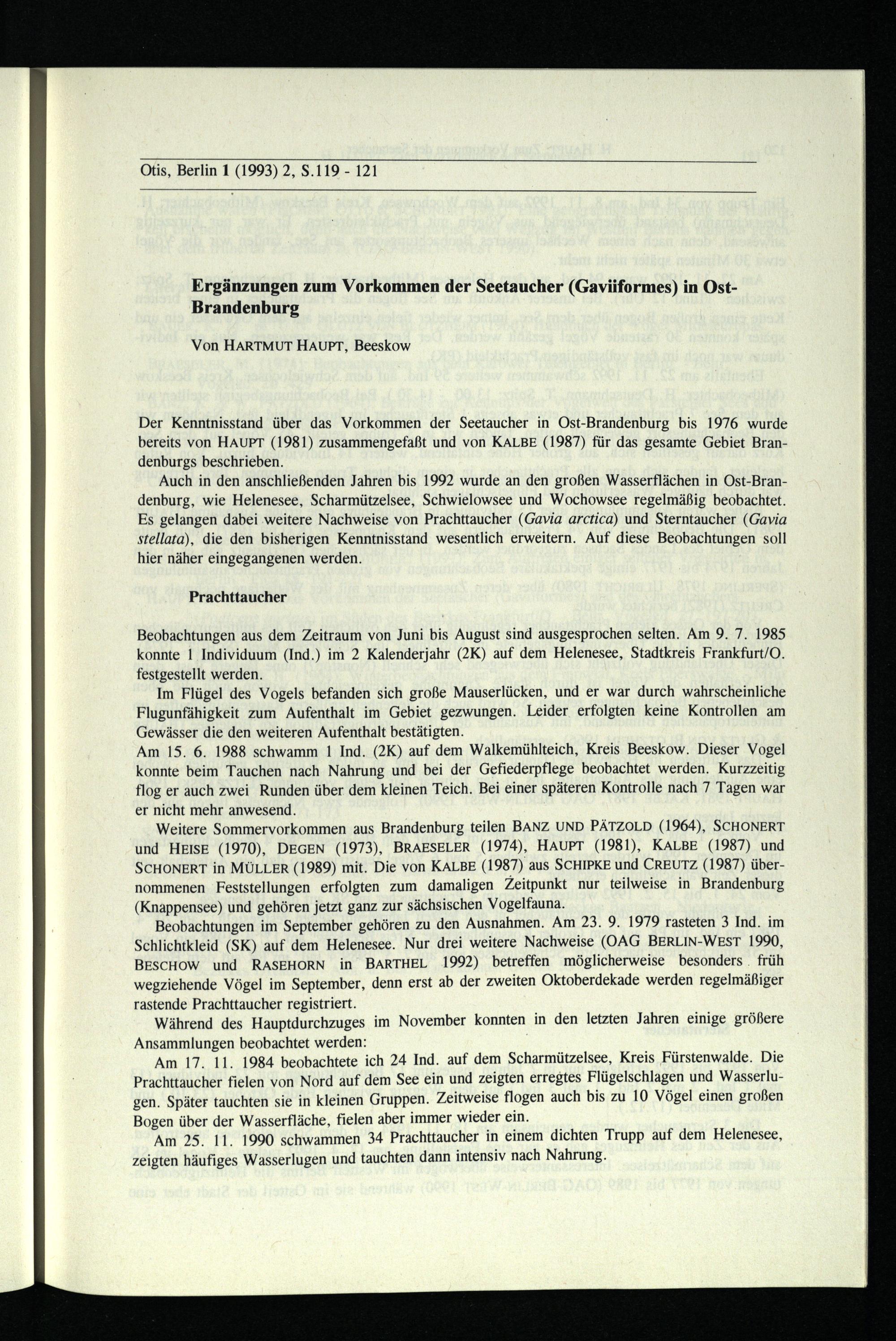 Haupt, Hartmut, Ergänzungen zum Vorkommen der Seetaucher (Gaviiformes) in Ost-Br...
