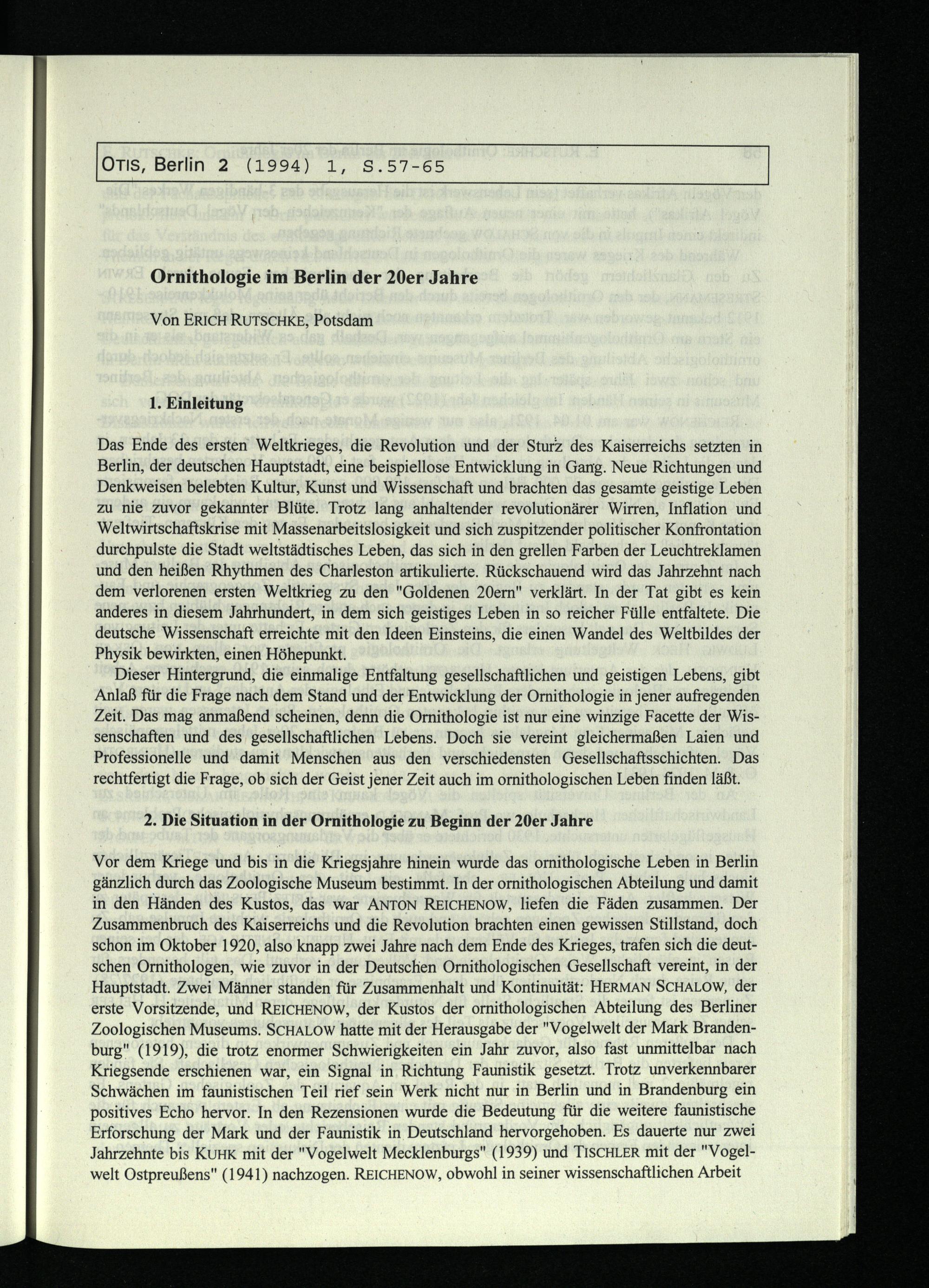 Rutschke, Erich, Ornithologie im Bereich Berlin der 20er Jahre
