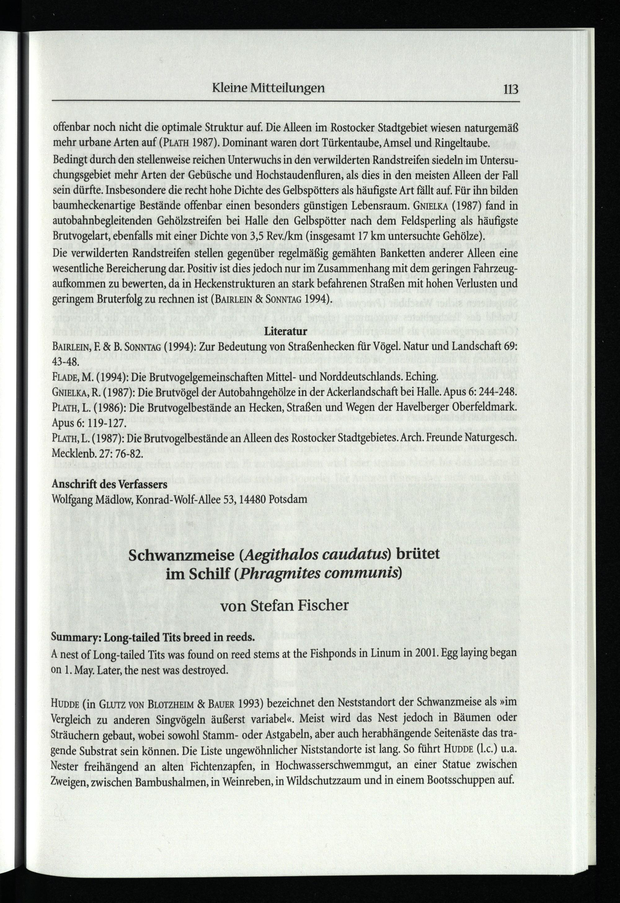 Fischer, Stefan, Schwanzmeise (Aegithalos caudatus) brütet im Schilf (Phragmites...