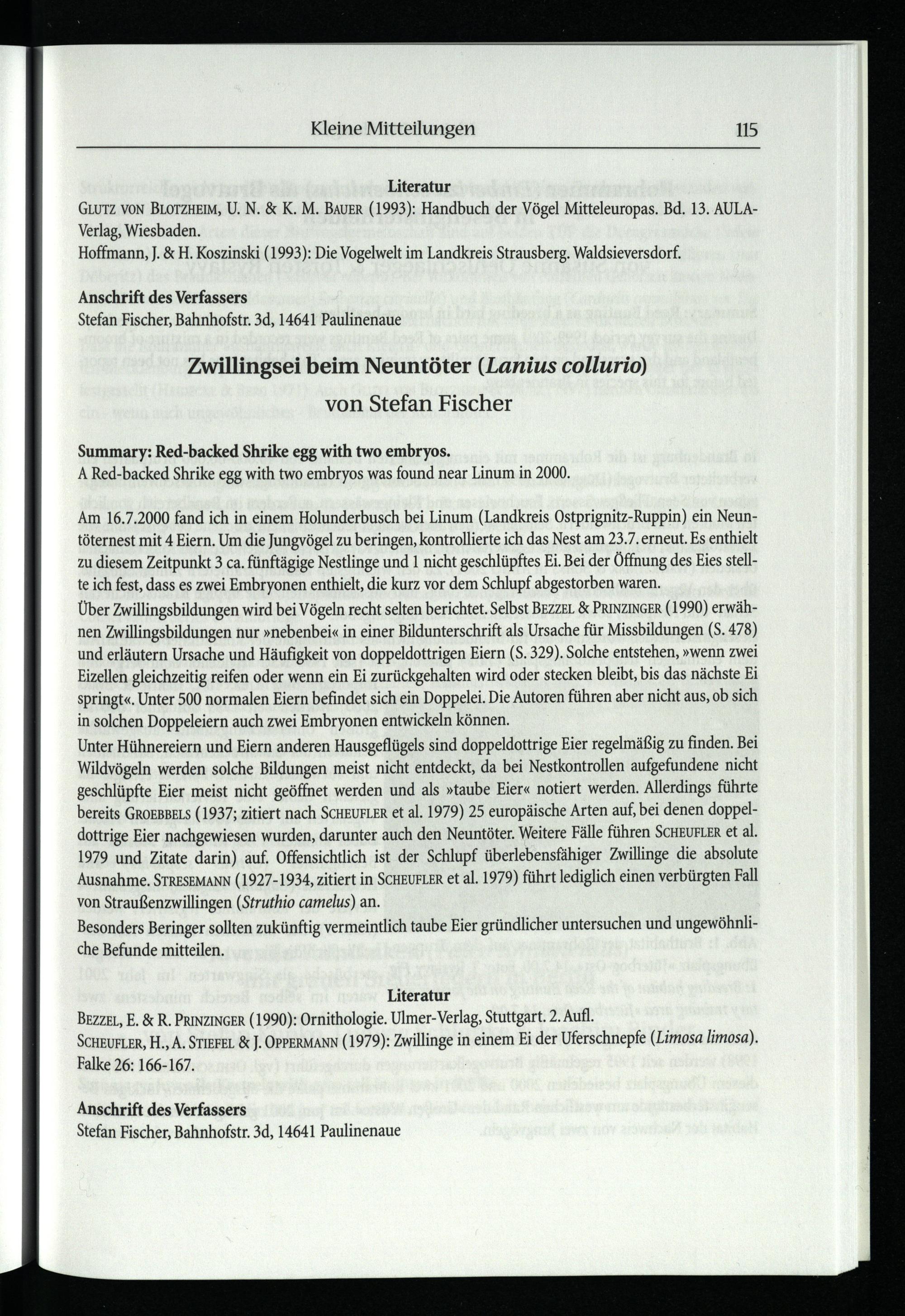 Fischer, Stefan, Zwillingsei beim Neuntöter (Lanius collurio)