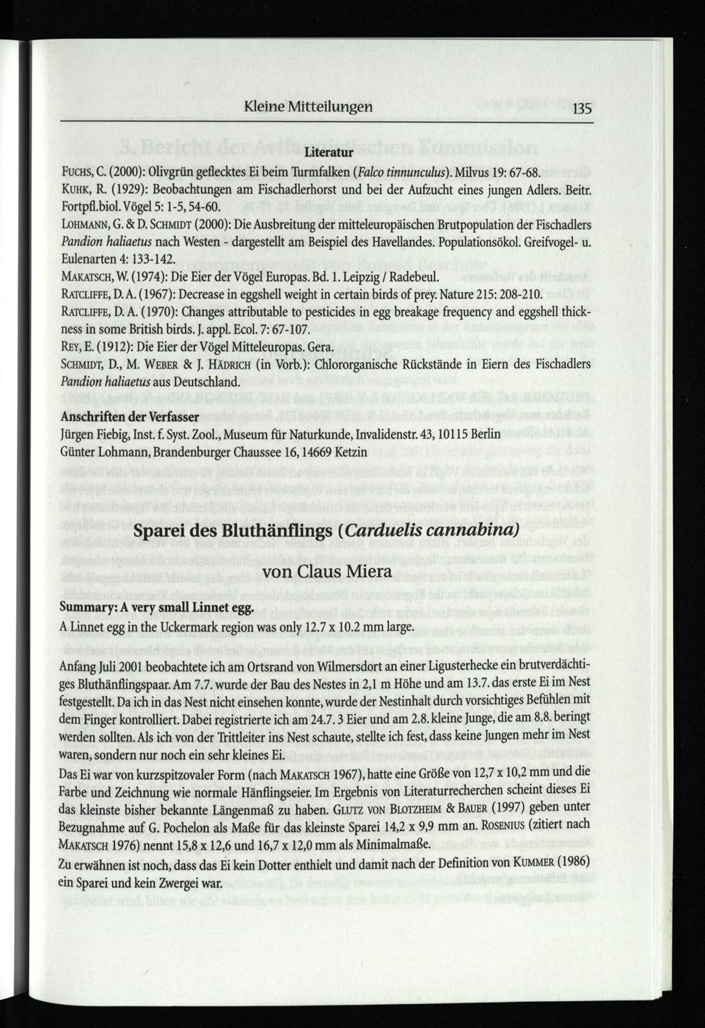 Miera, CLaus, Sparei des Bluthänflings (Carduelis cannabina)