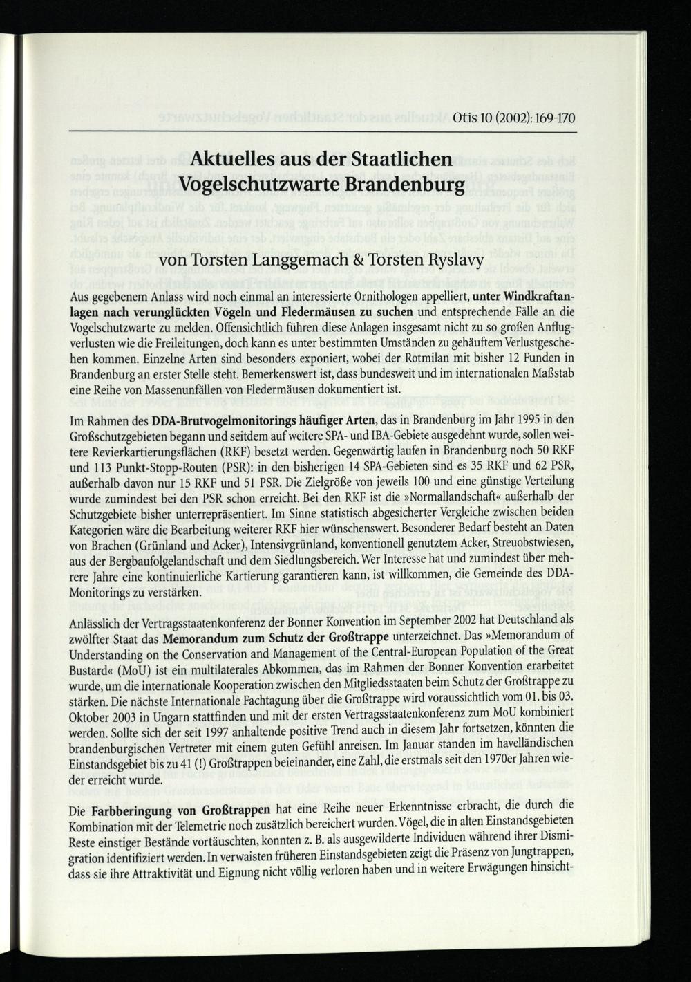 Langgemach, Torsten/ Ryslavy Torsten, Aktuelles aus der Staatlichen Vogelwarte B...