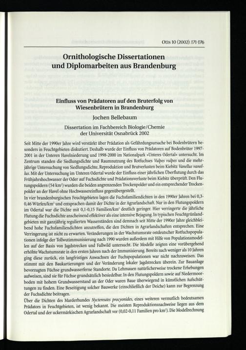 Ornithologische Dissertationen und Diplomarbeiten aus Brandenburg