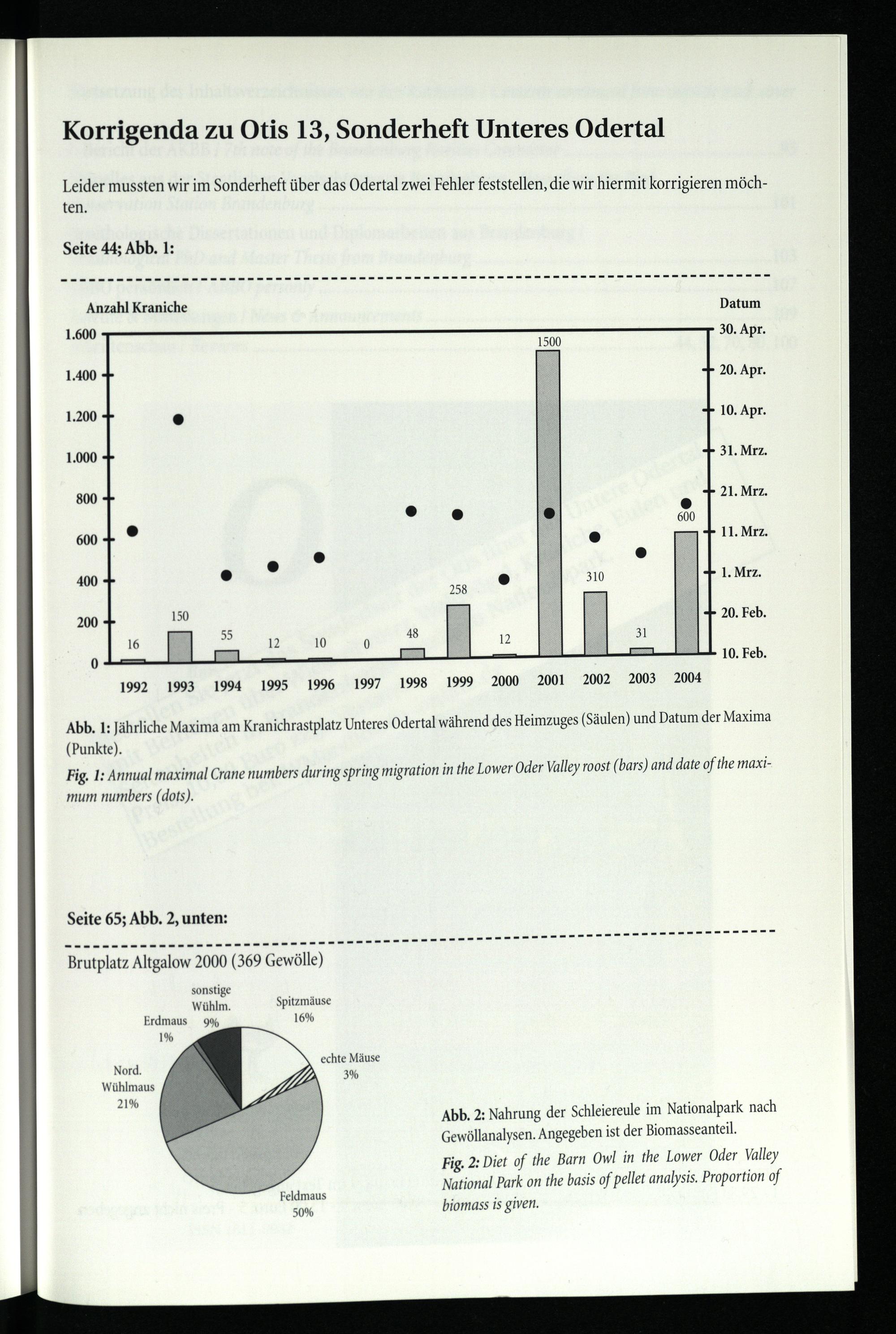 Korrigenda zu Otis 13. Sonderheft Unteres Odertal