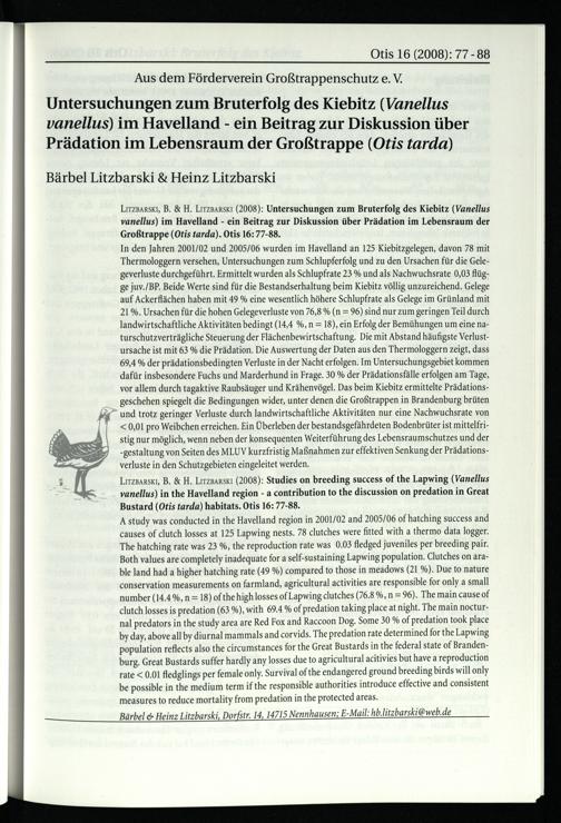 Litzbarski, Bärbel/ Litzbarski, Heinz, Untersuchungen zum Bruterfolg des Kiebitz...