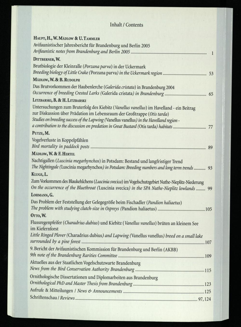 Inhaltsverzeichnis, gleichzeitig Rückdeckel