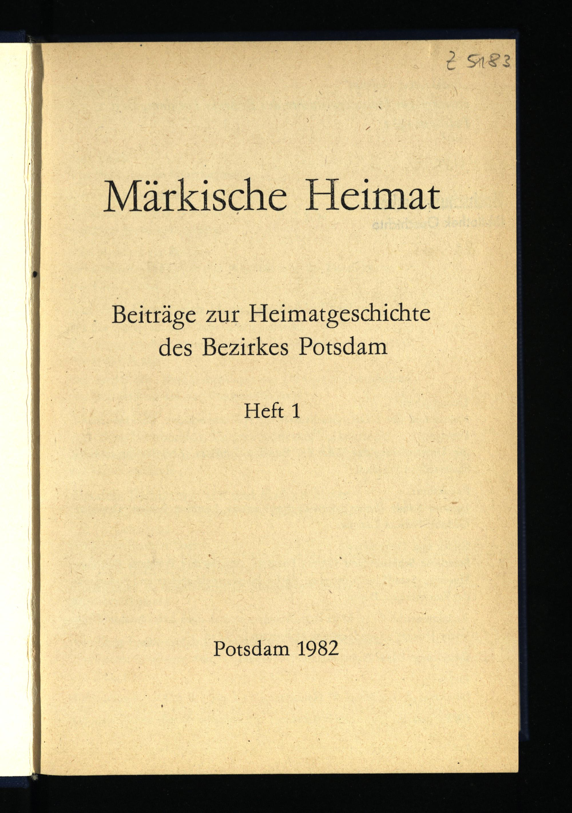 Märkische Heimat : Beiträge zur Heimatgeschichte des Bezirkes Potsdam