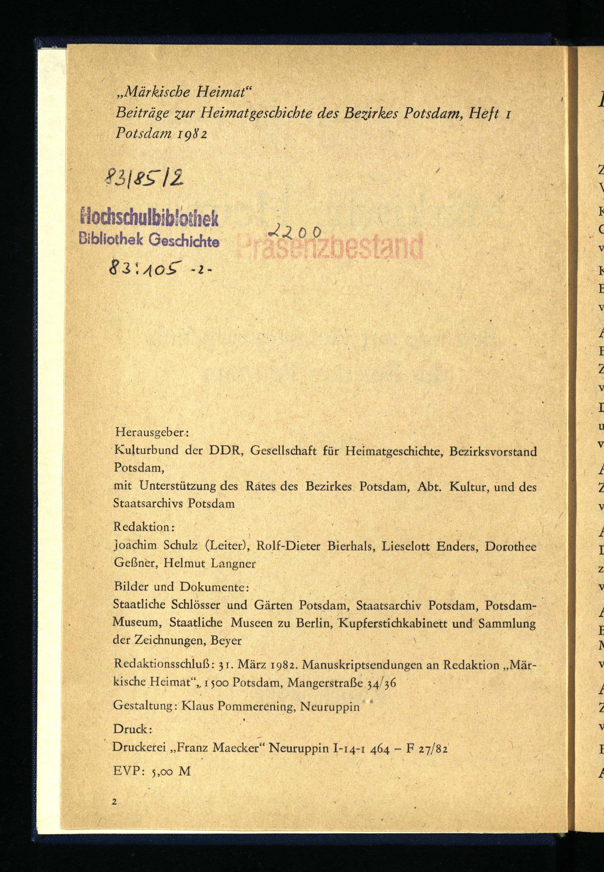 Märkische Heimat : Beiträge zur Heimatgeschichte des Bezirkes Potsdam