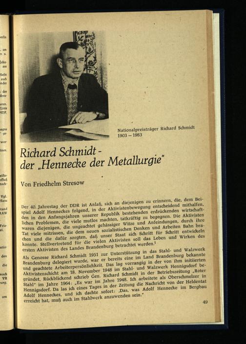 Stresow, Friedhelm, Richard Schmidt - der "Hennecke der Metallurgie"