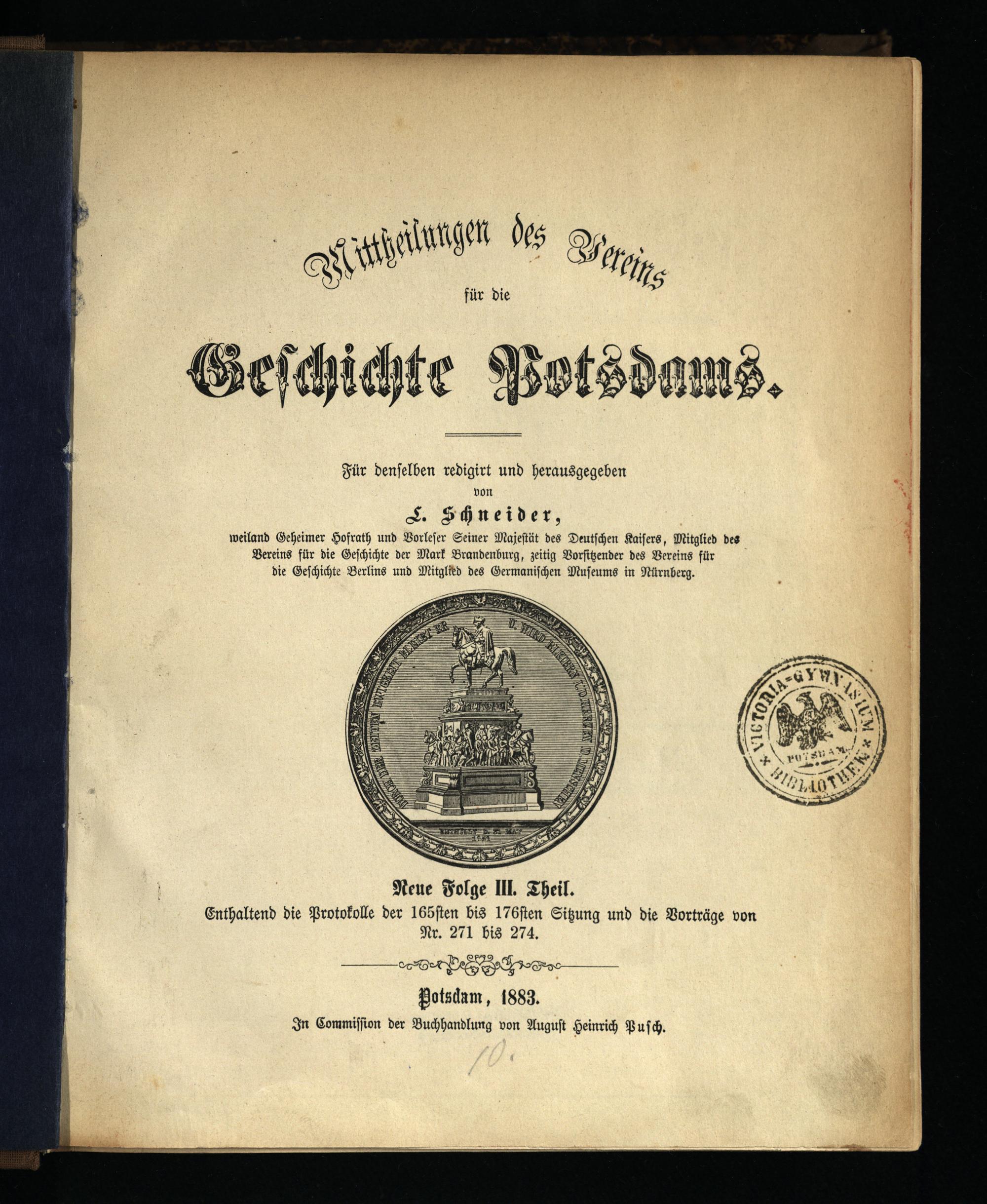 Mitteilungen des Vereins für die Geschichte Potsdams / hrsg. vom Vorstande