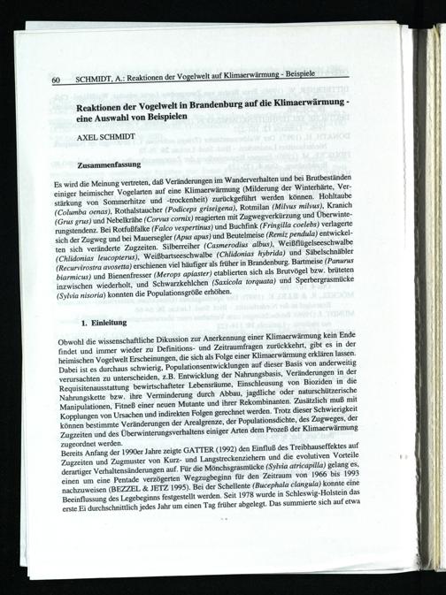 Schmidt, Axel, Reaktionen der Vogelwelt in Brandenburg auf die Klimaerwärmung - eine...